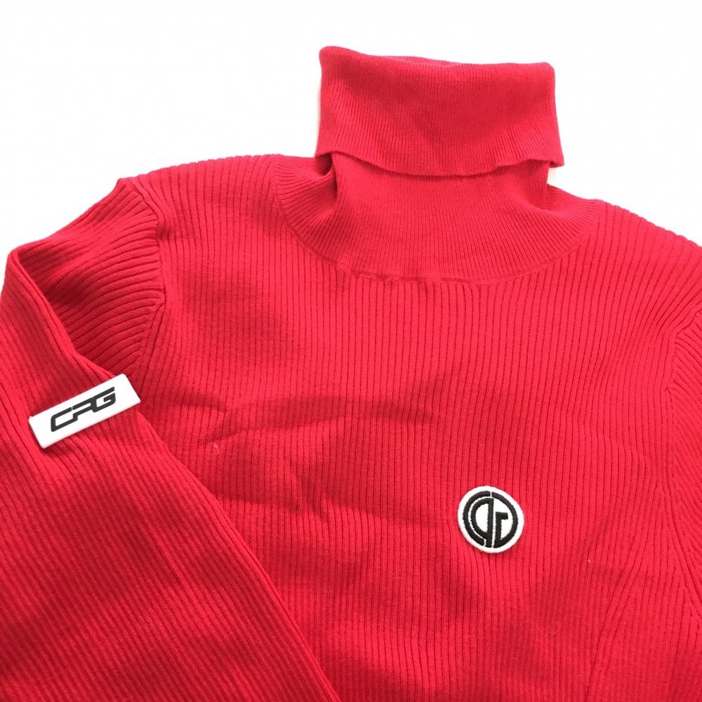 【超美品】シーピージーゴルフ ハイネックニットワンピース レッド×白 ロゴシリコン 後ライン レディース 1 ゴルフウェア CPG GOLF