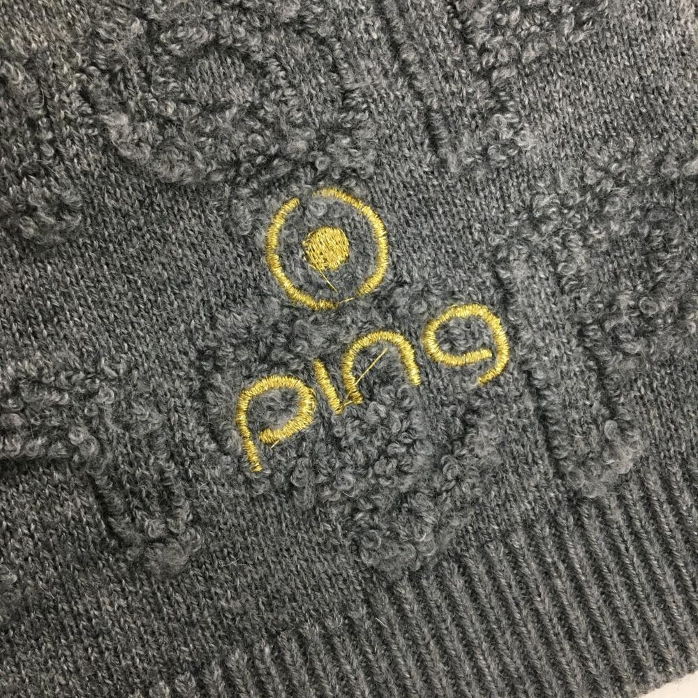 【超美品】ピン ニットスカート グレー 立体ロゴ総柄 裏地付 ウール混 レディース M ゴルフウェア 2024年モデル PING