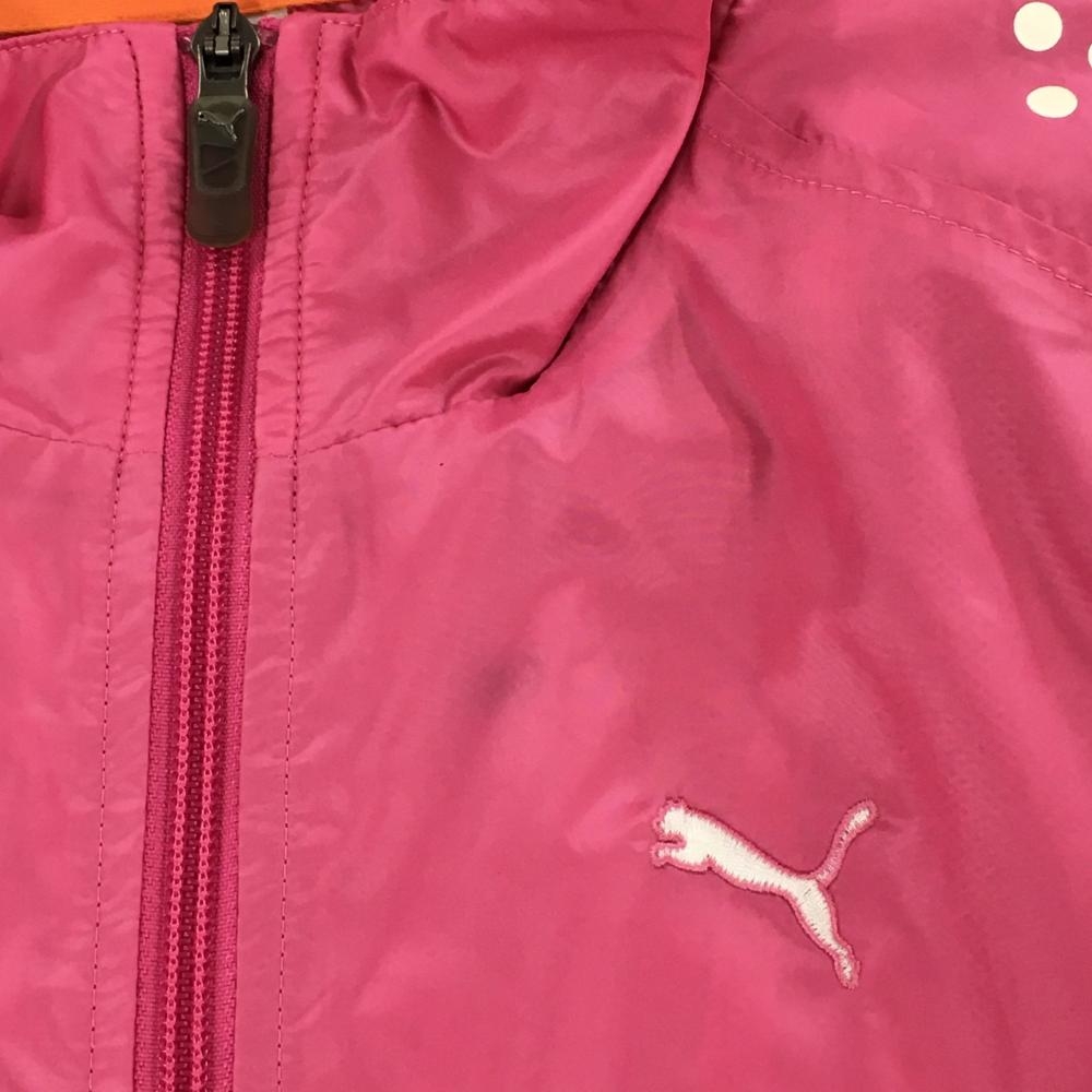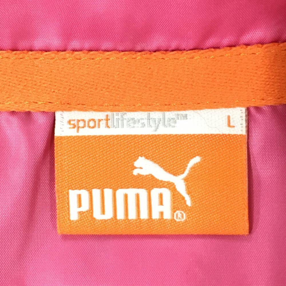 【美品】プーマ ジャケットブルゾン ピンク×白 胸元ロゴ 裏地メッシュ 裾ドローコード レディース L ゴルフウェア PUMA