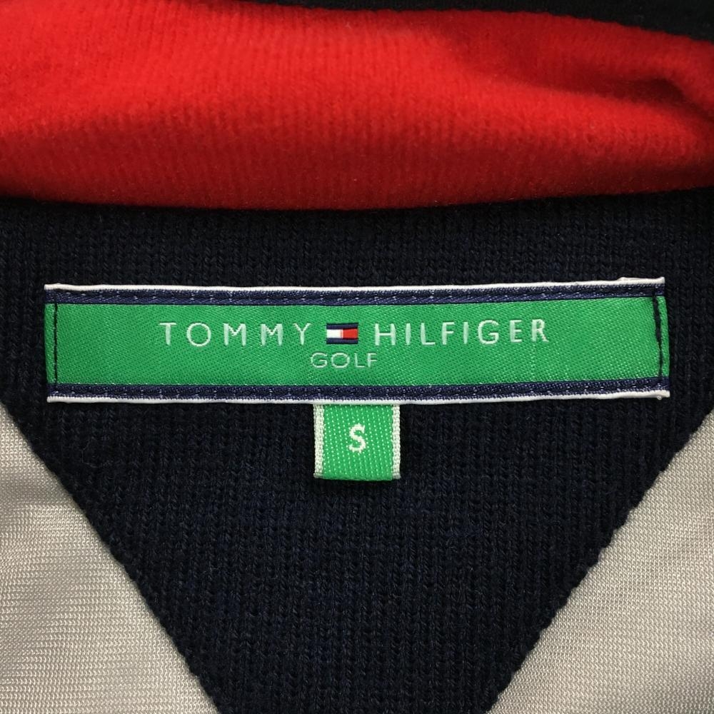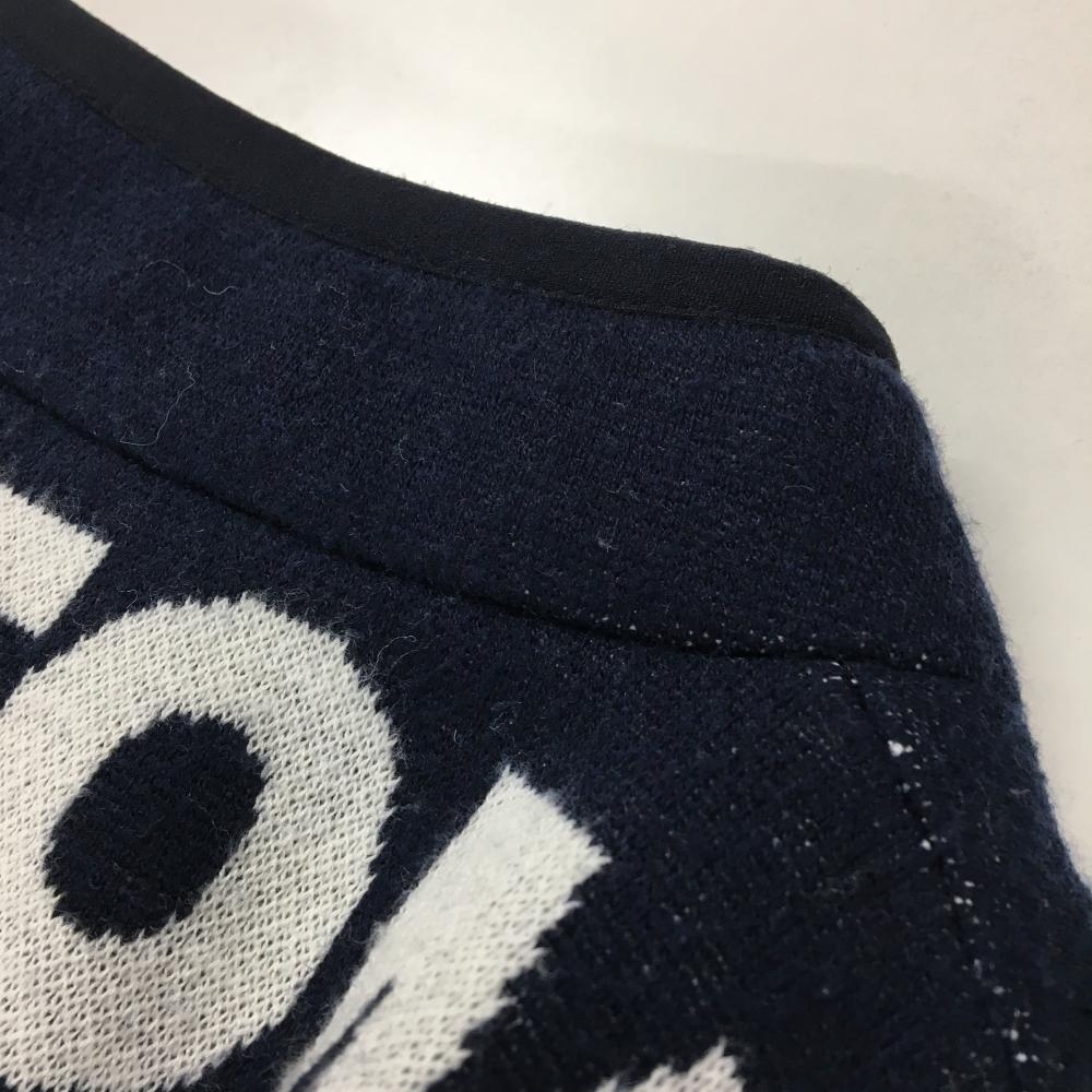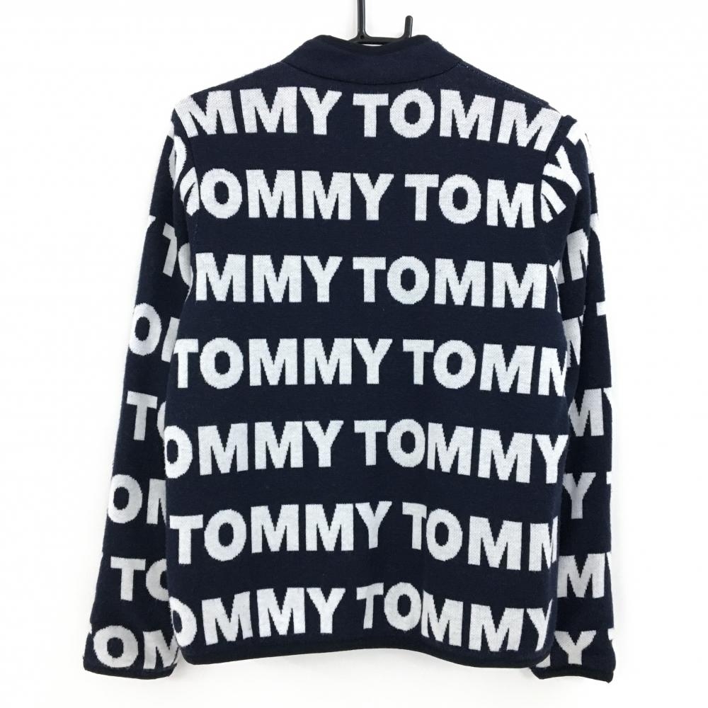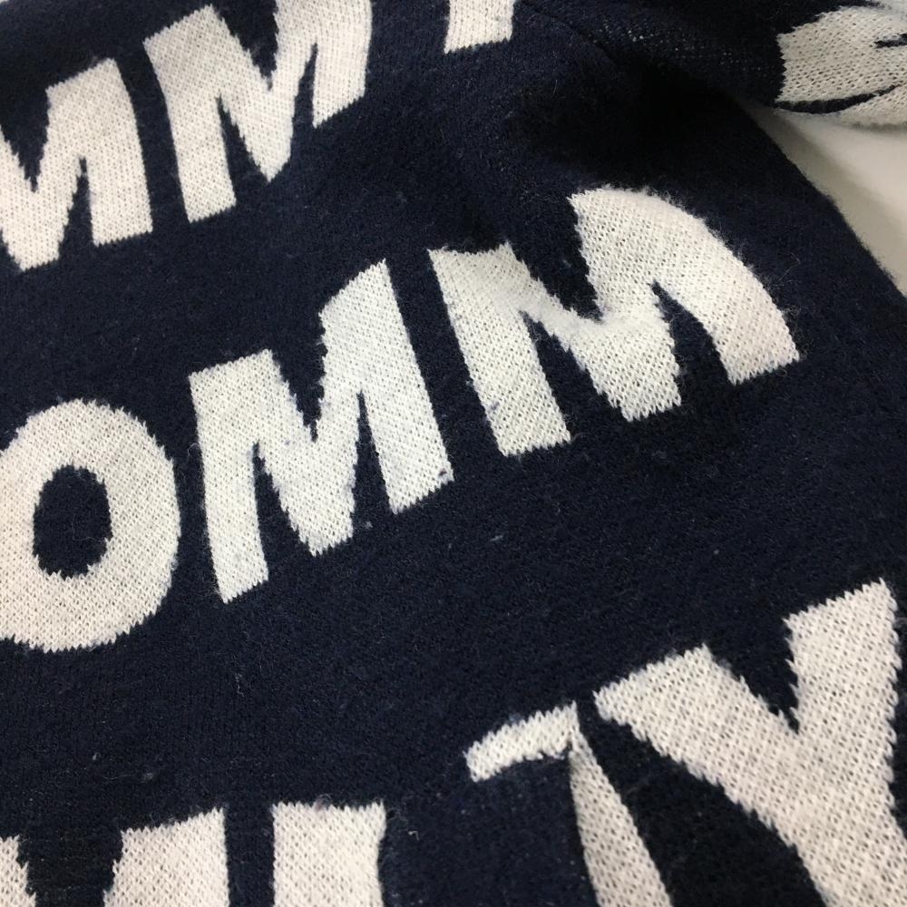 【美品】トミーヒルフィガーゴルフ 中綿ニットジャケット ネイビー×白 ロゴ総柄 レディース S ゴルフウェア Tommy Hilfiger Golf