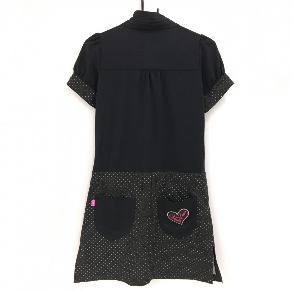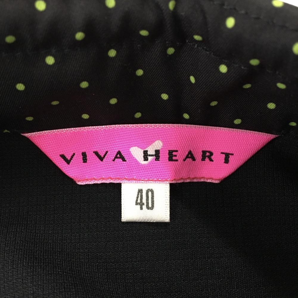 【超美品】ビバハート 半袖ハイネックワンピース 黒×ライトグリーン ドット レディース 40 ゴルフウェア VIVA HEART