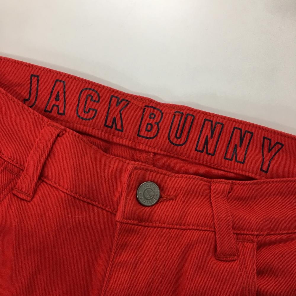 【美品】ジャックバニー パンツ レッド バックロゴ レインボーワッペン レディース 1(M) ゴルフウェア Jack Bunny