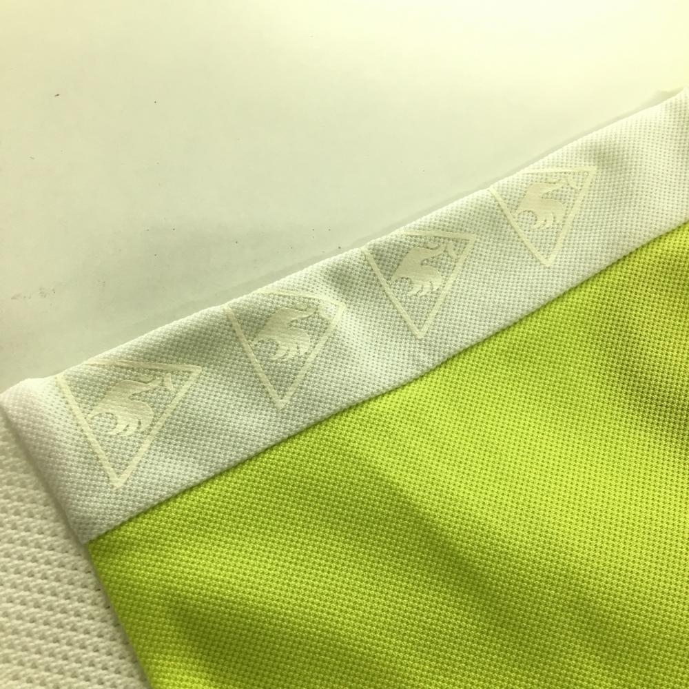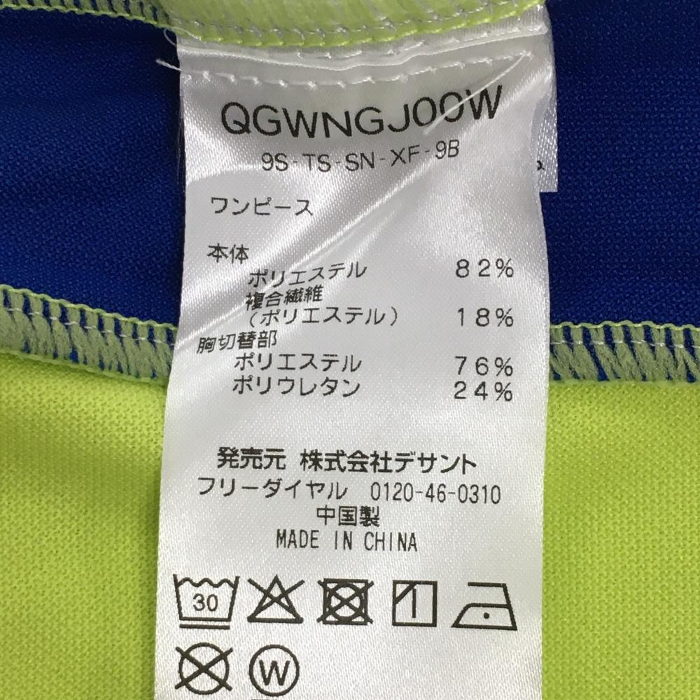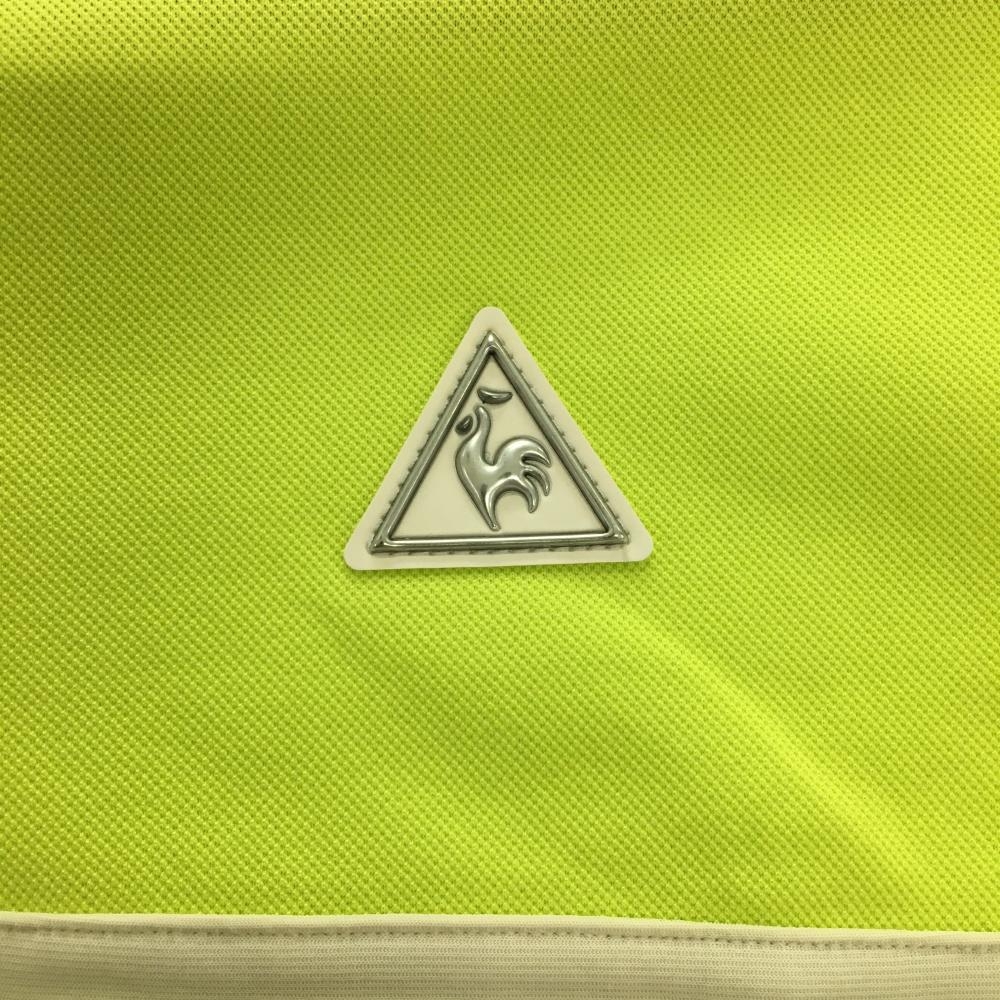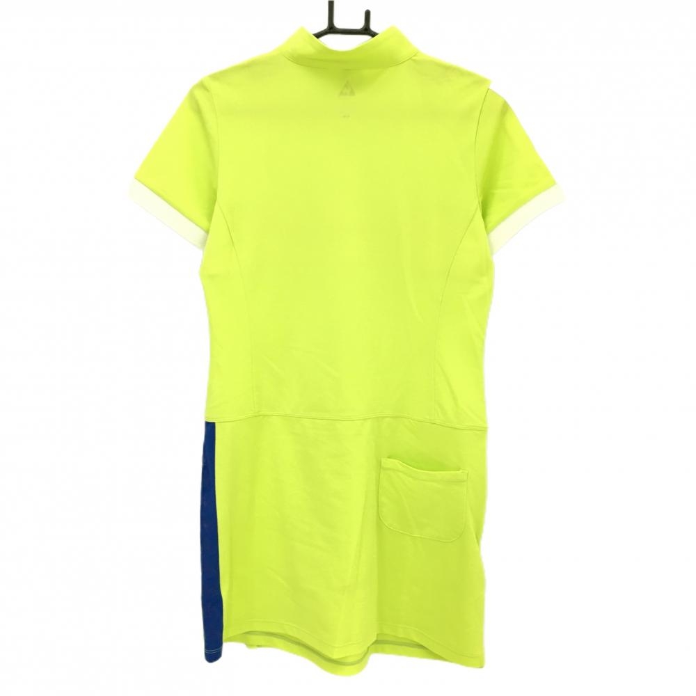 【美品】ルコック 半袖ハイネックワンピース 蛍光グリーン×白 胸元切替 ハーフジップ レディース L ゴルフウェア le coq sportif