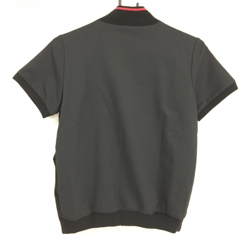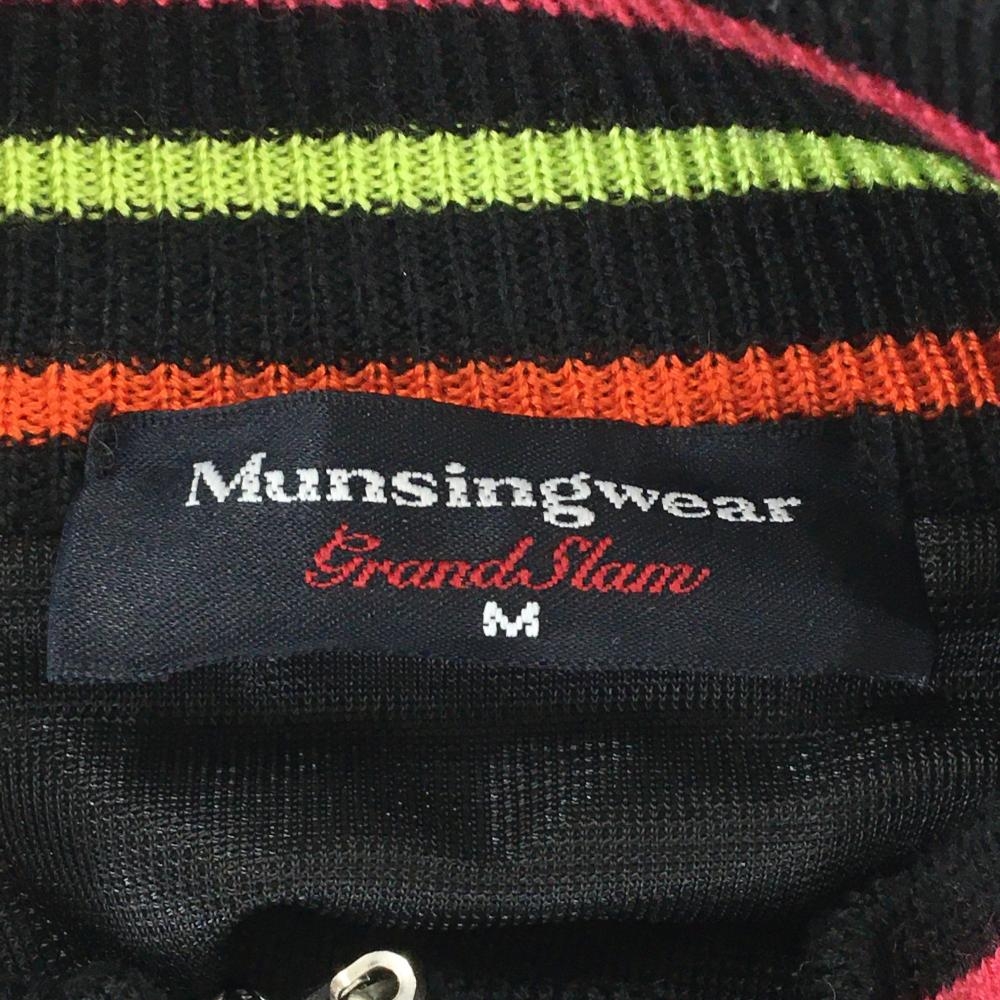【超美品】マンシングウェア 半袖ニットジャケット 黒×マルチ 一部アーガイル 異素材 ウール混 レディース M ゴルフウェア Munsingwear