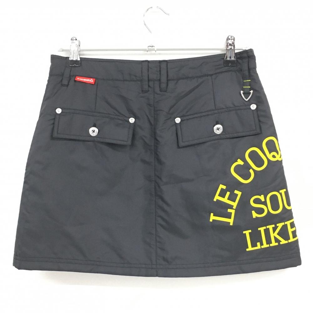【美品】ルコック スカート ダークグレー×イエロー ロゴ刺しゅう ビッグプリント レディース 11 ゴルフウェア le coq sportif