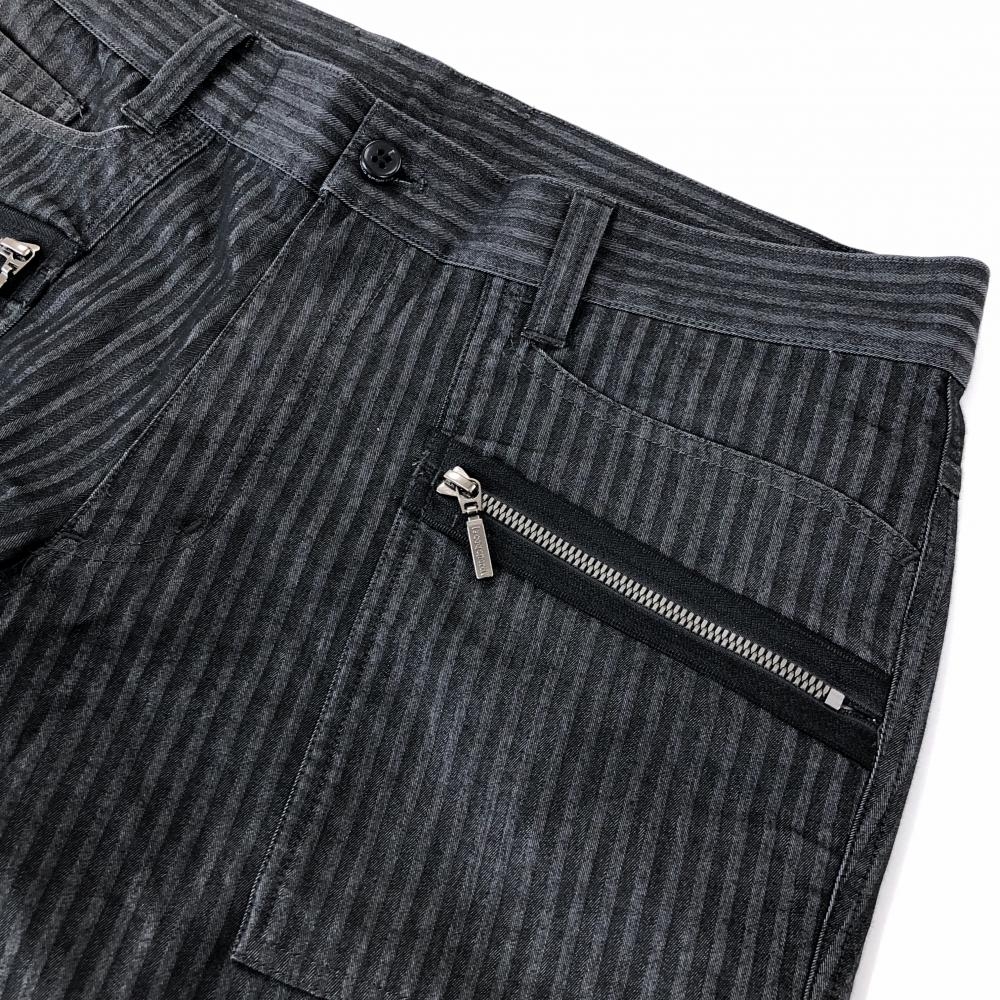 【美品】ルコック パンツ ダークグレー×黒 ストライプ織生地 ストレッチ ポケット複数 メンズ 88 ゴルフウェア le coq sportif
