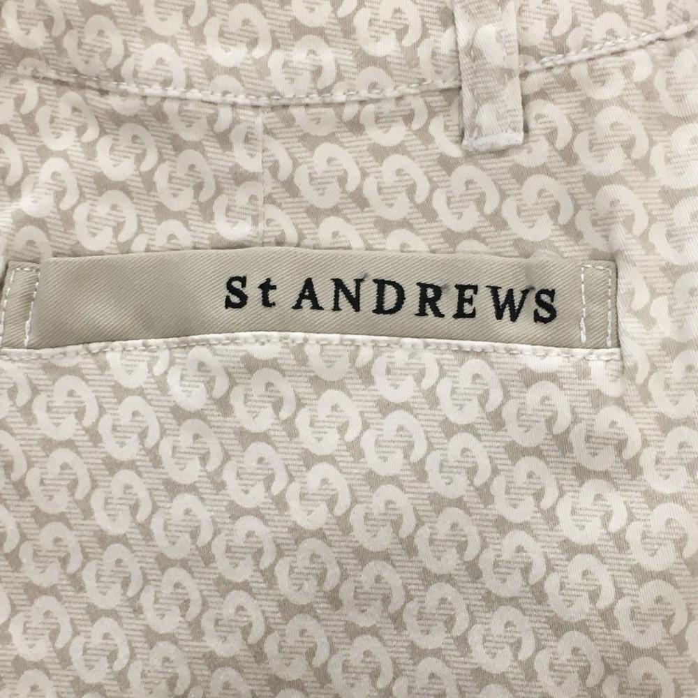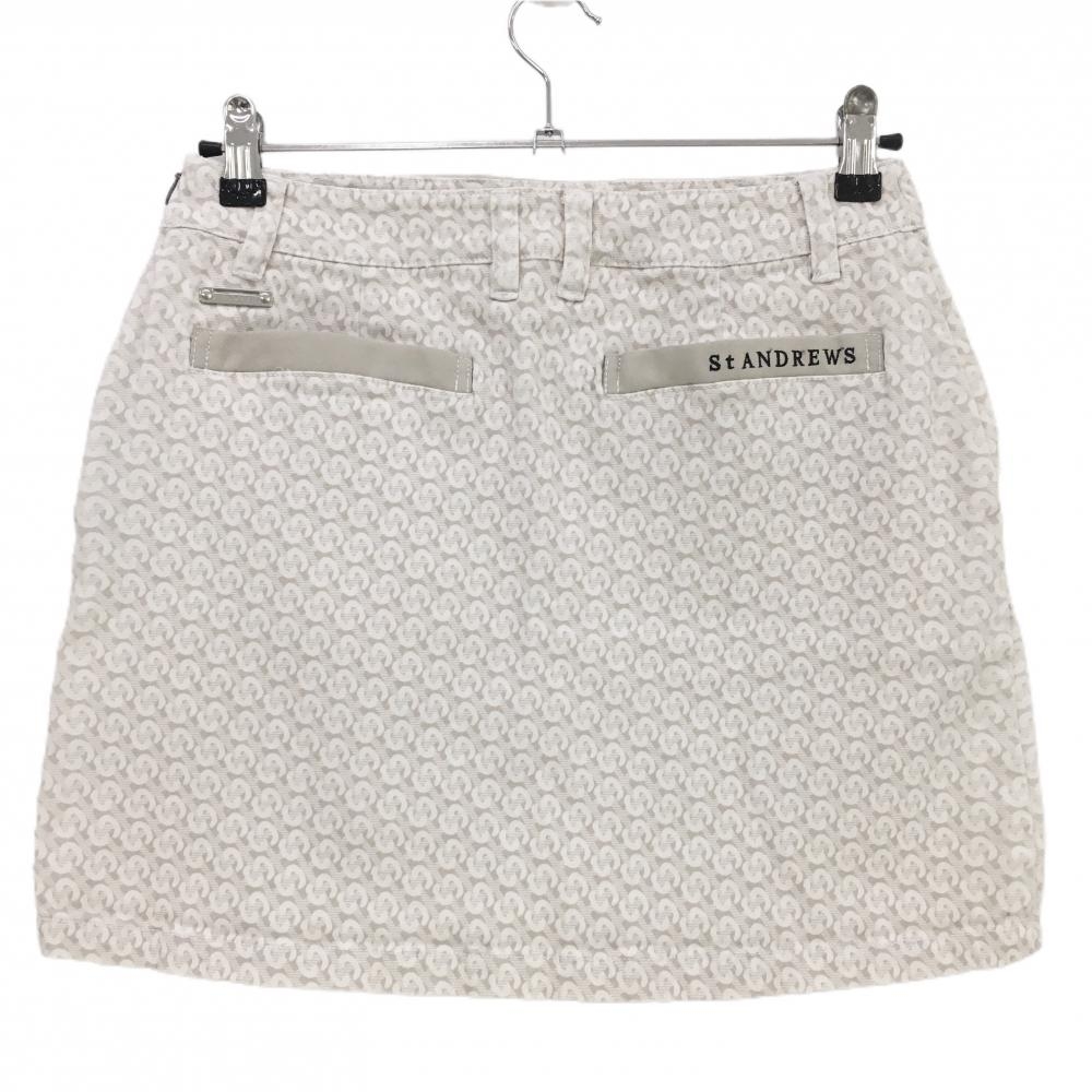 【美品】セントアンドリュース スカート グレージュ×アイボリー 総柄 バックロゴ刺しゅう レディース M ゴルフウェア St ANDREWS