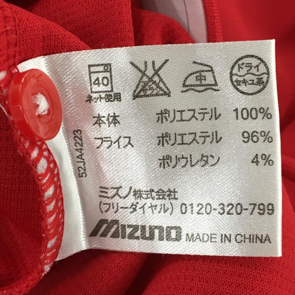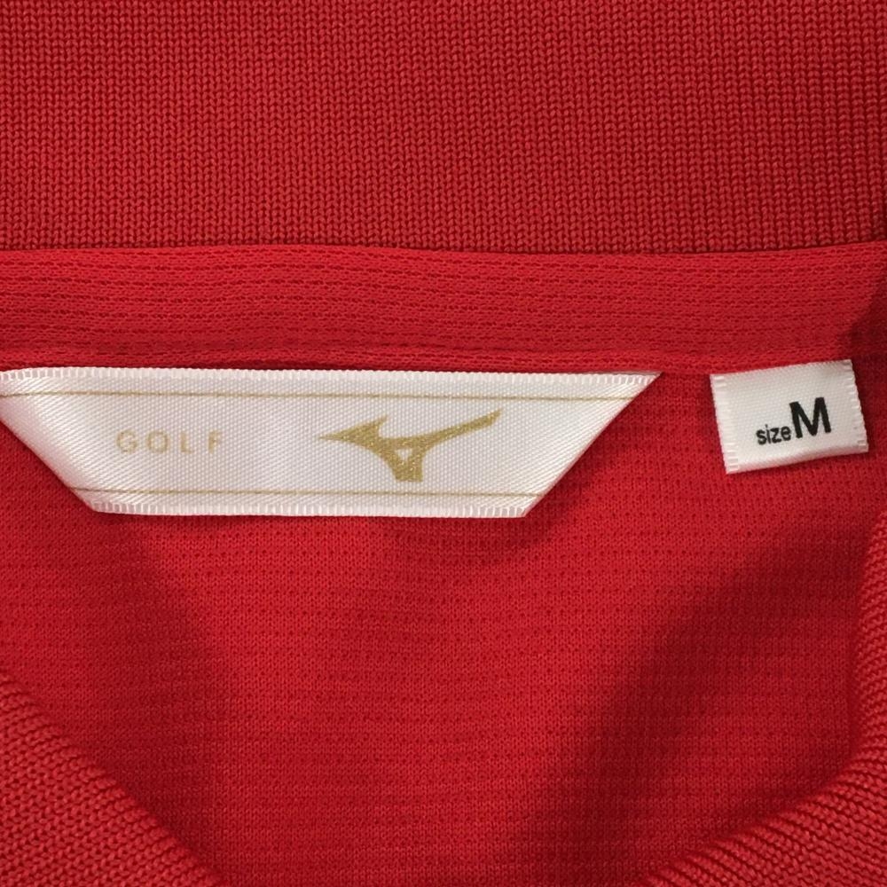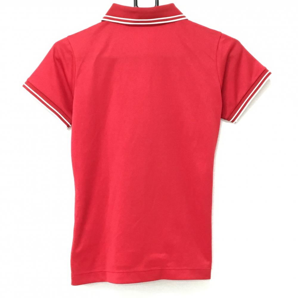 【超美品】ミズノ 半袖ポロシャツ レッド ロゴ刺しゅう 襟・袖口白ライン レディース M ゴルフウェア MIZUNO