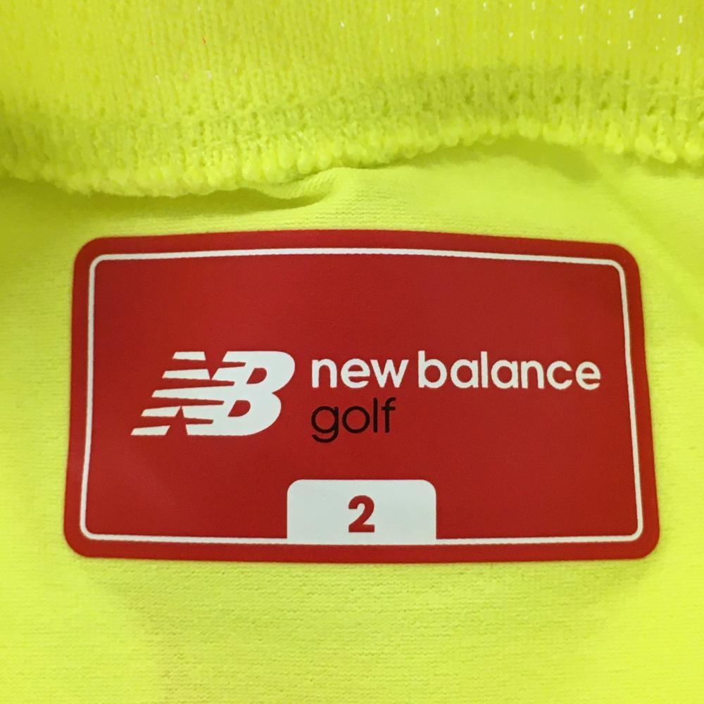 【美品】ニューバランスゴルフ 半袖ハイネックシャツ イエロー×白 ビッグロゴ レディース 2(L) ゴルフウェア 2022年モデル New Balance