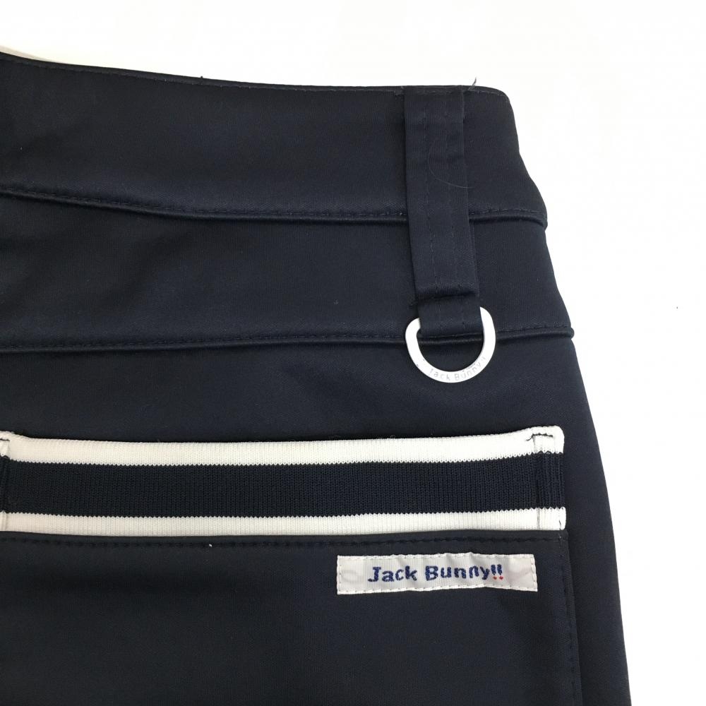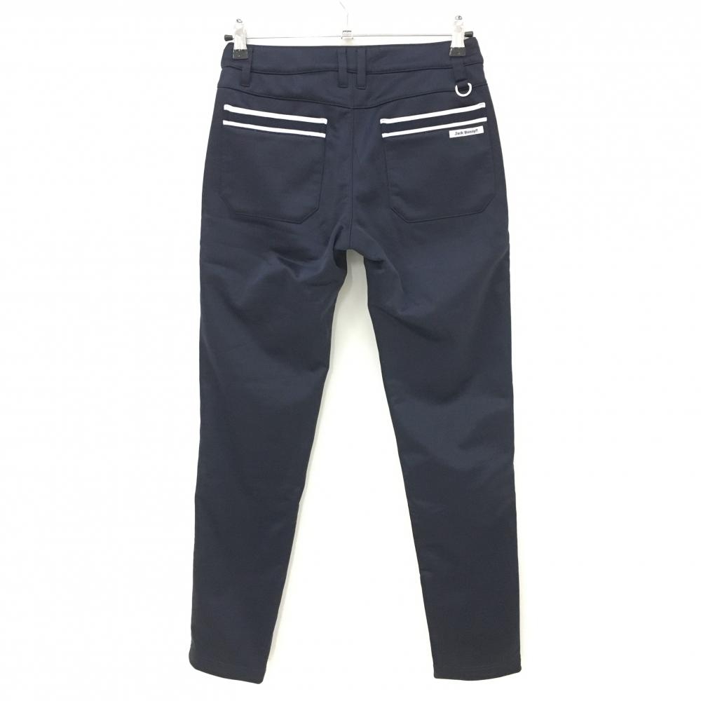 【美品】ジャックバニー パンツ ネイビー×白 シンプル ポケット口ライン 裏起毛 レディース 0(S) ゴルフウェア Jack Bunny