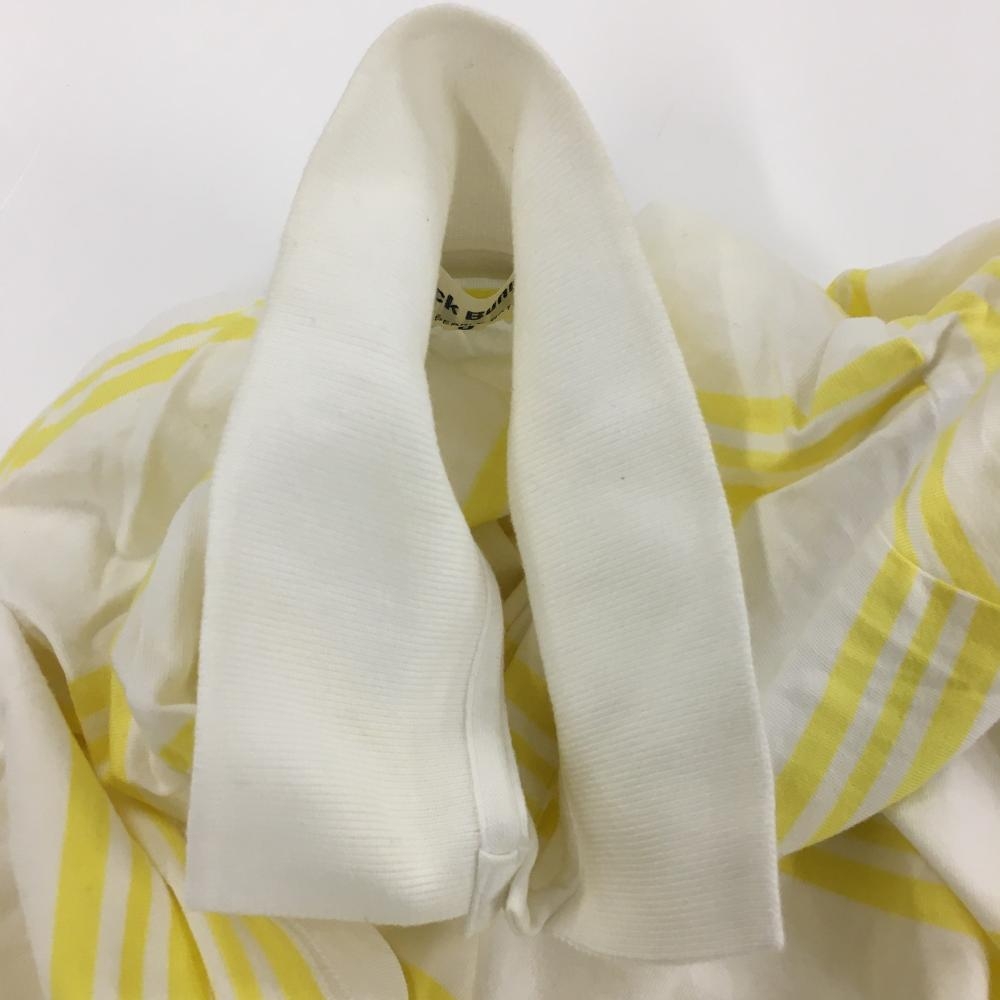 【美品】ジャックバニー 半袖ポロシャツ 白×イエロー ボーダー 胸元ロゴ レディース 0(S) ゴルフウェア Jack Bunny