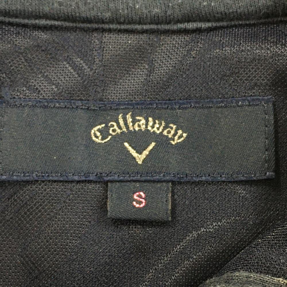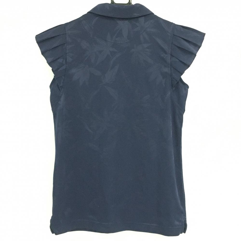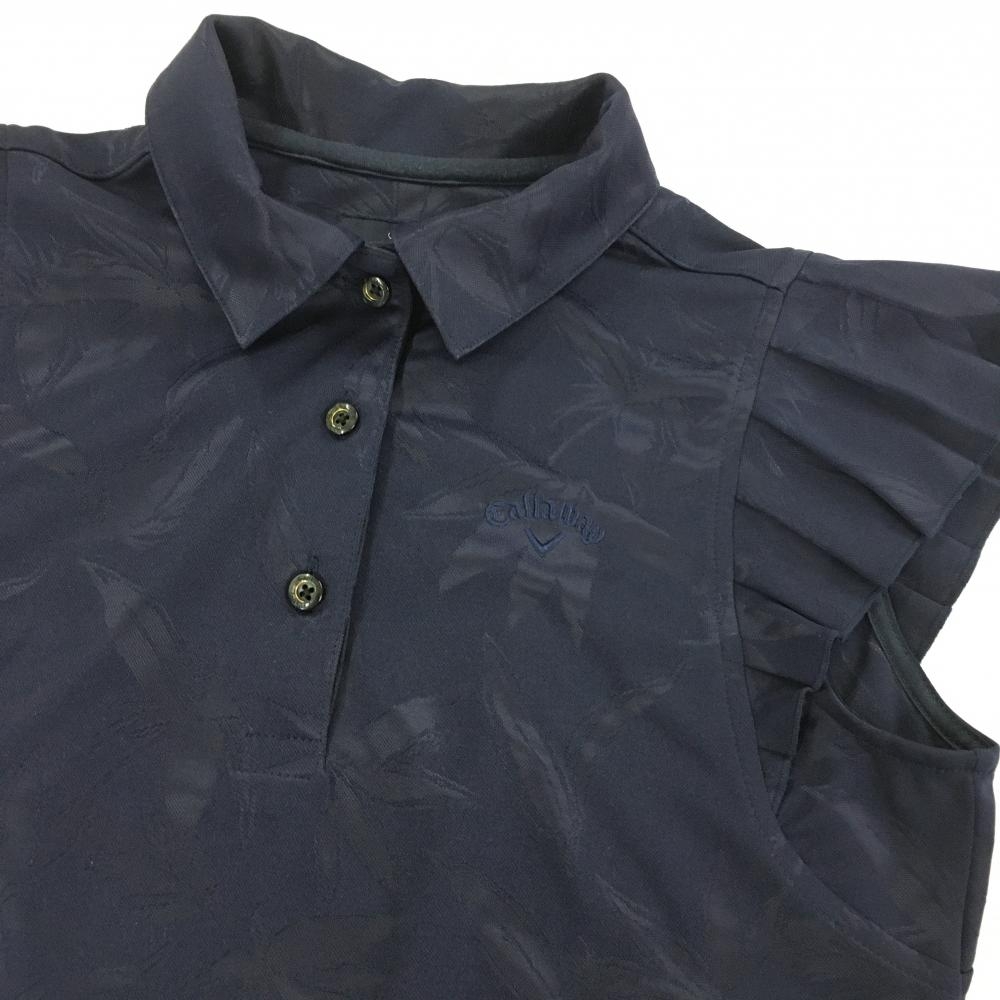 キャロウェイ 半袖ポロシャツ ネイビー リーフ柄地模様 袖フリル レディース S ゴルフウェア Callaway