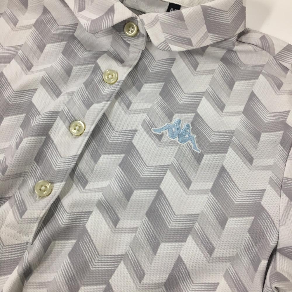 【超美品】カッパ 半袖ポロシャツ 白×グレー 総柄 胸元ロゴ刺しゅう レディース M ゴルフウェア Kappa