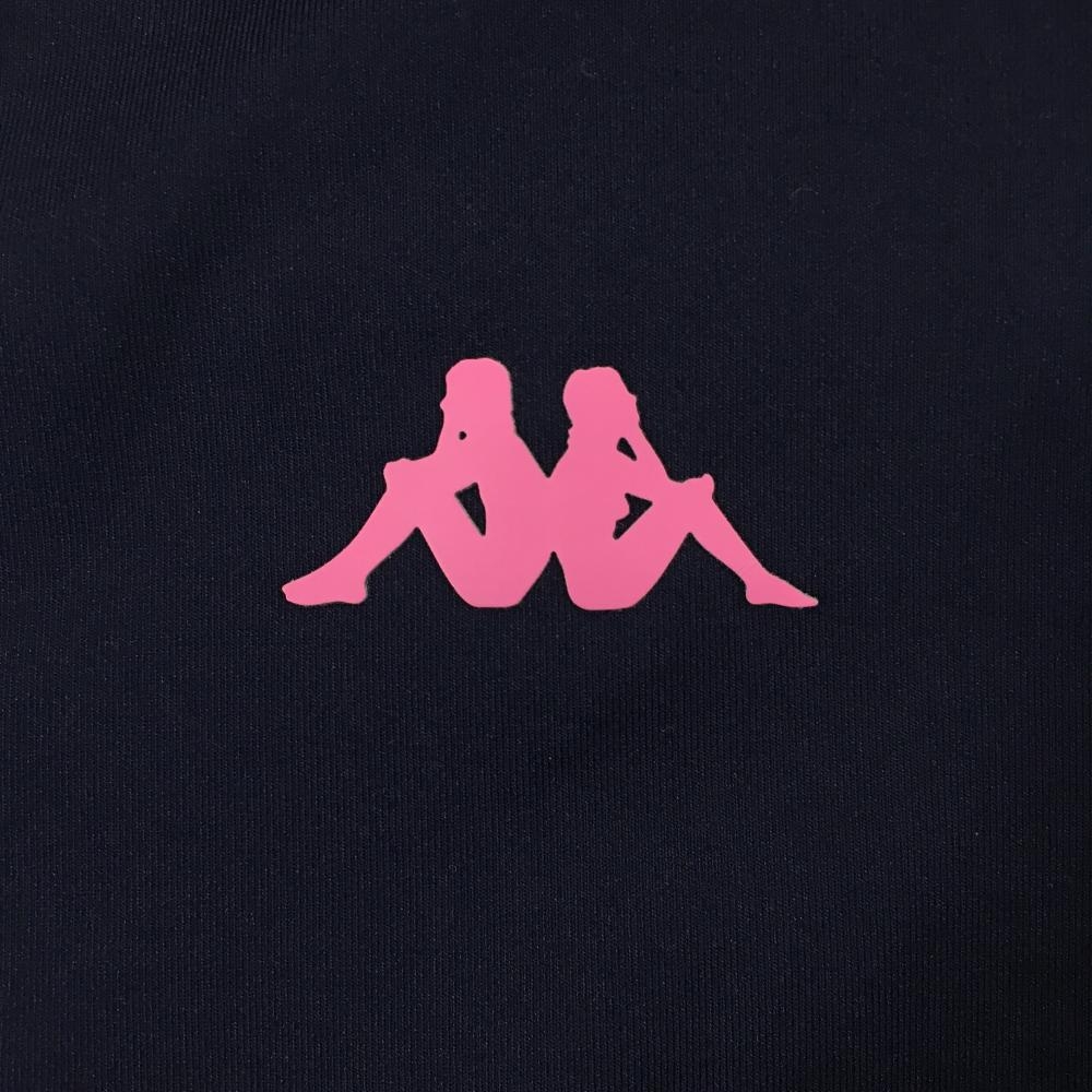【超美品】カッパ 半袖ポロシャツ ネイビー×ピンク 立体ロゴ レディース M ゴルフウェア Kappa