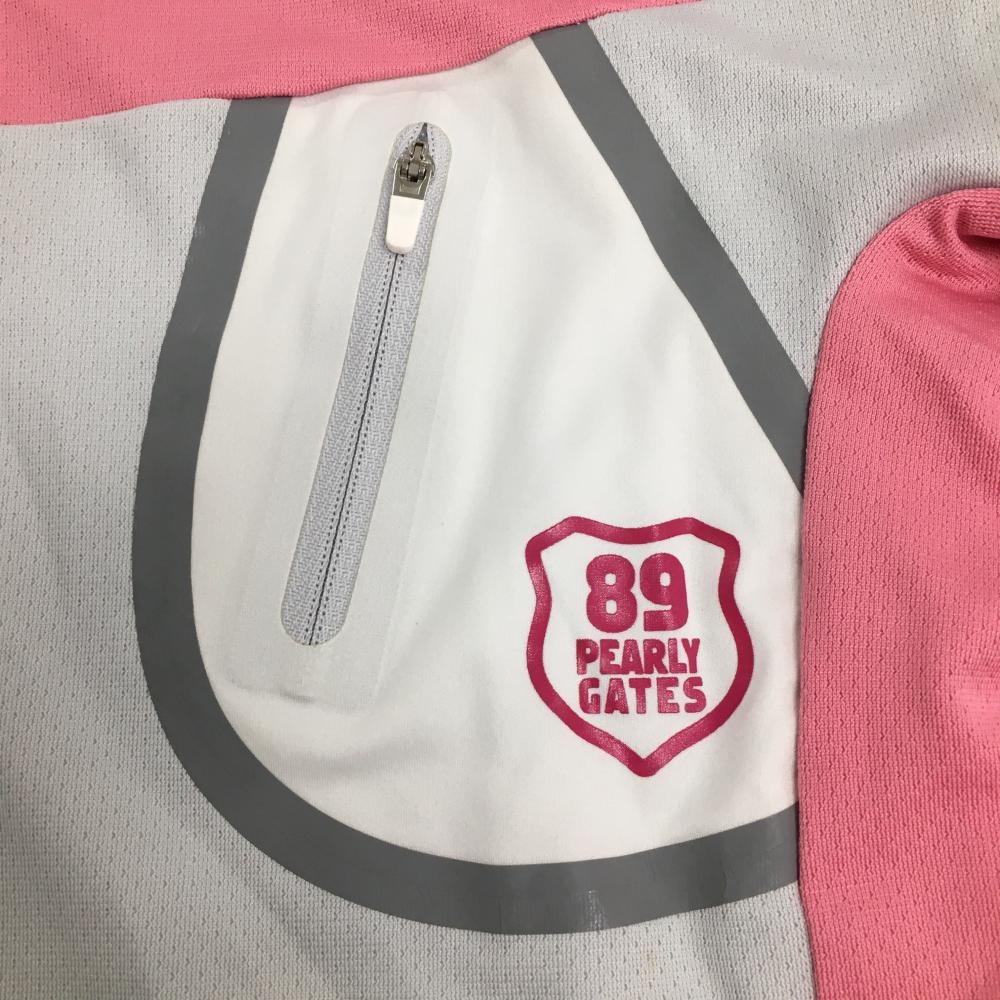 【超美品】パーリーゲイツ 半袖ポロシャツ ピンク×ライトグレー スナップボタン 胸ポケット付 レディース 1(M) ゴルフウェア PEARLY GATES