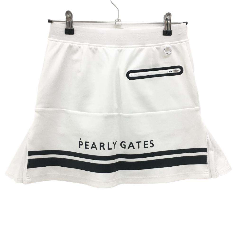 【美品】PGGパーリーゲイツ スカート 白×黒 裾ライン ウエストゴム レディース 0(S) ゴルフウェア PEARLY GATES