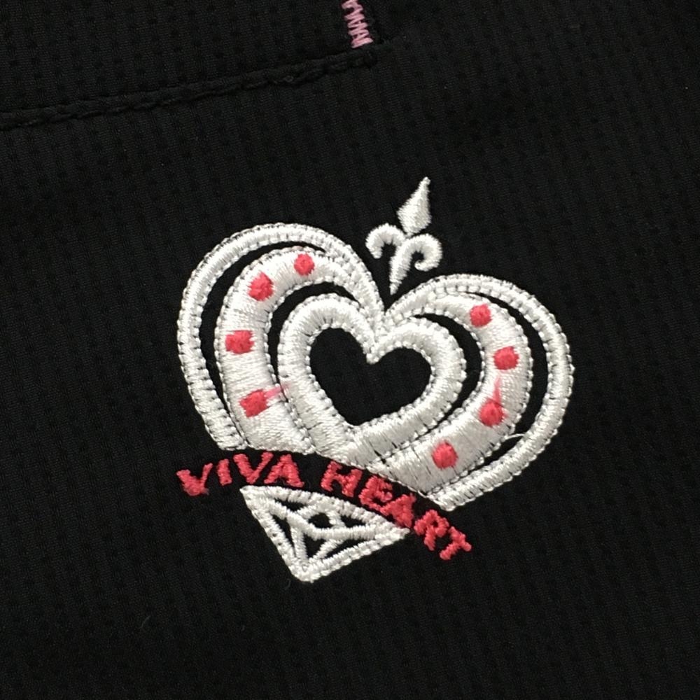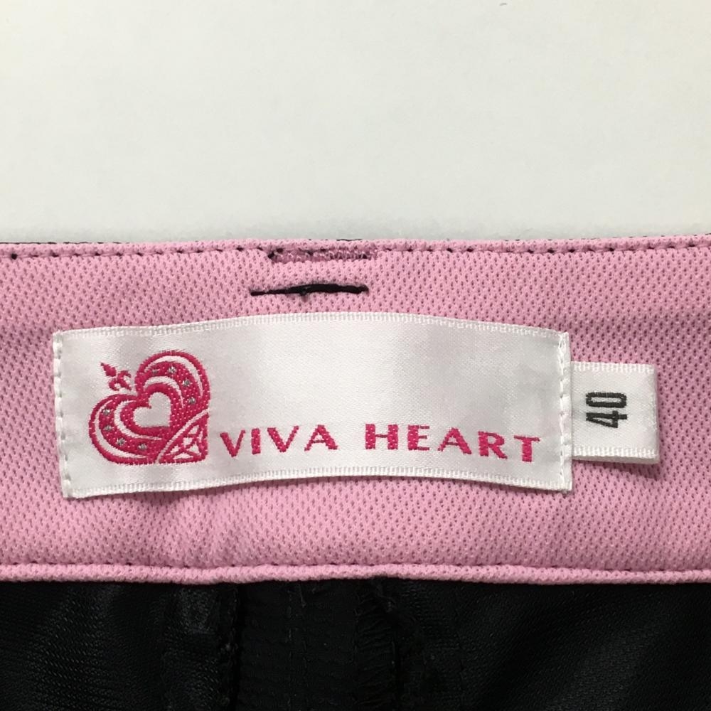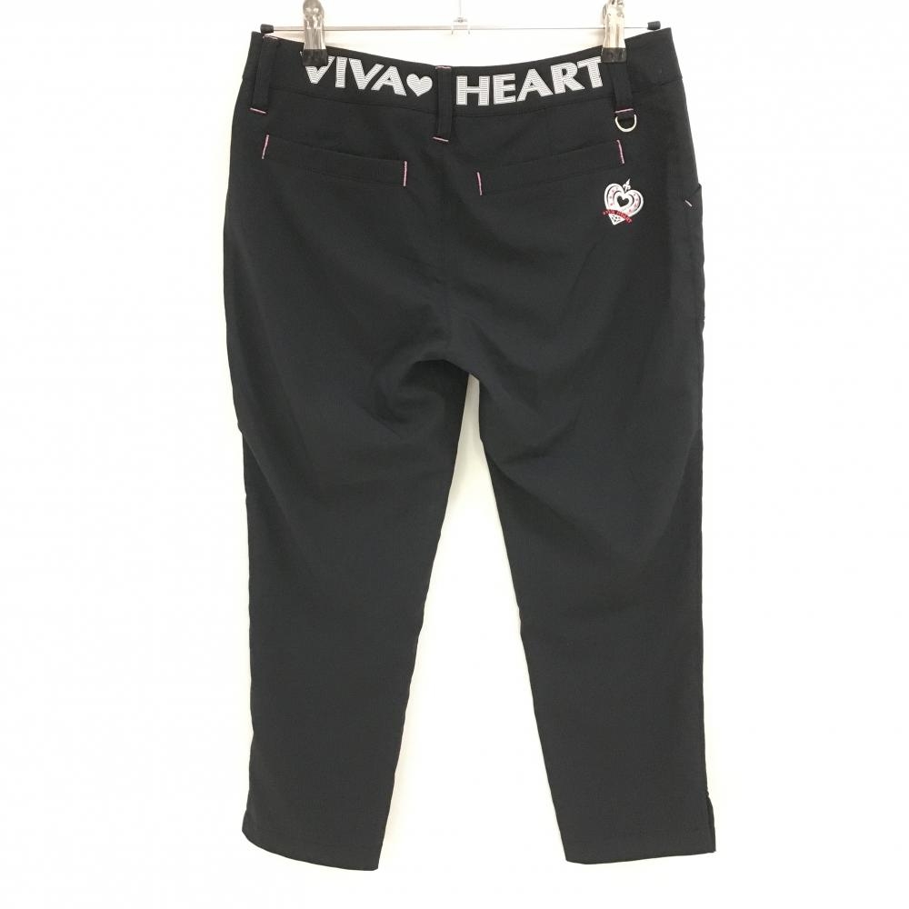 【美品】ビバハート 七分丈パンツ 黒 ストライプ織生地 ベルト部ロゴ レディース 40(M) ゴルフウェア VIVA HEART