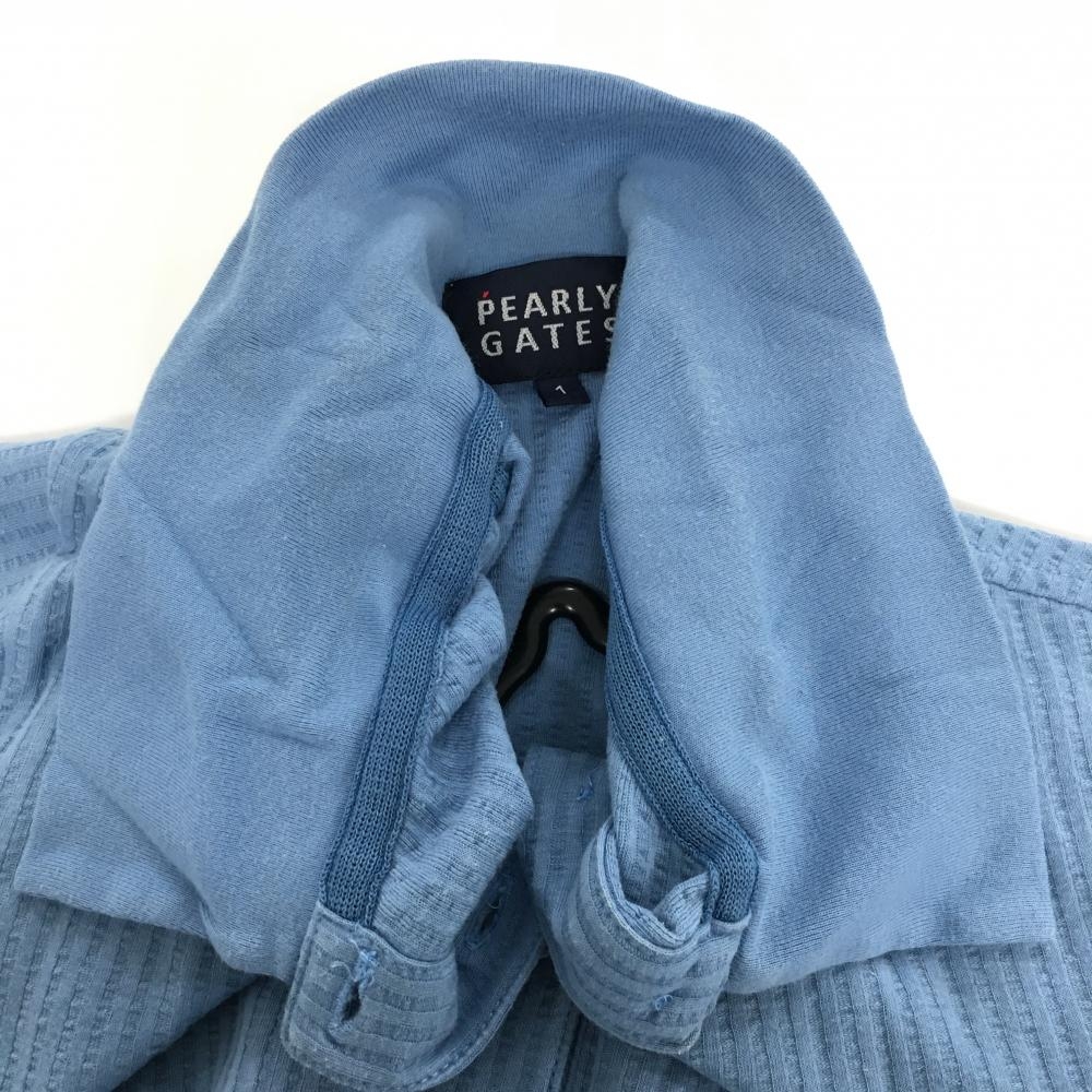 パーリーゲイツ 半袖ポロシャツ ライトブルー ストライプ織生地 コットン100% レディース 1(M) ゴルフウェア PEARLY GATES