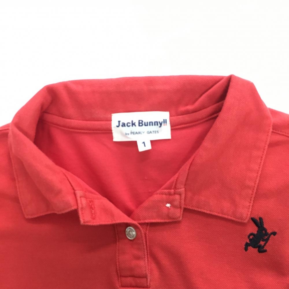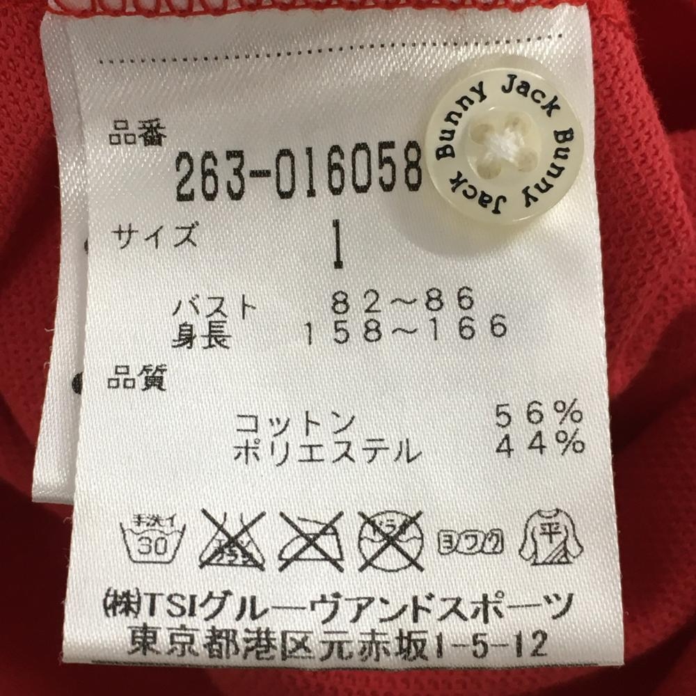 ジャックバニー 半袖ポロシャツ レッド×白 コットン混 プリント レディース 1(M) ゴルフウェア Jack Bunny