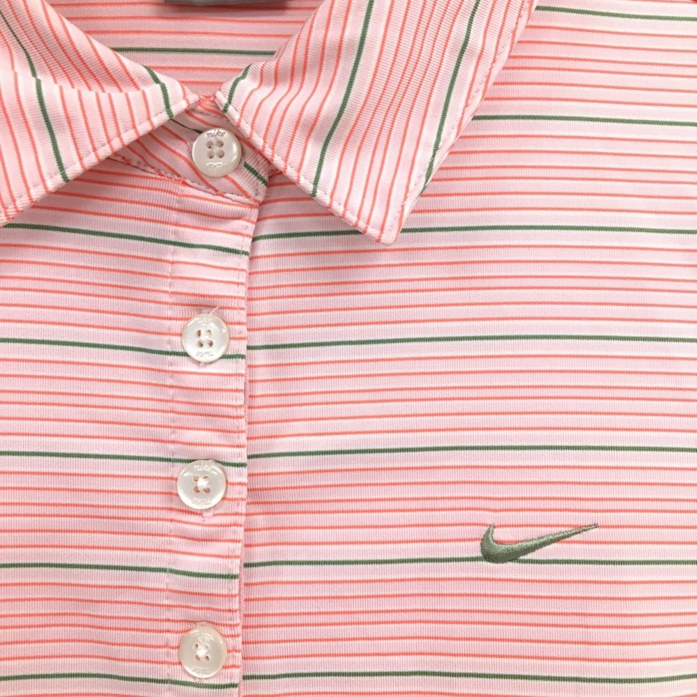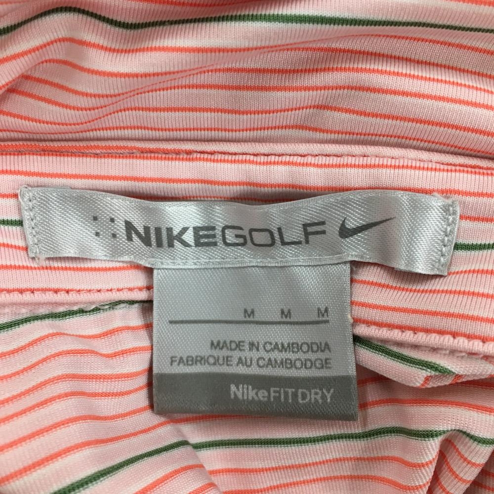 【超美品】ナイキゴルフ 半袖ポロシャツ ピンク×グリーン ボーダー FITDRY ストレッチ レディース M ゴルフウェア NIKE