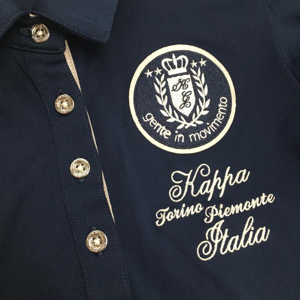 【超美品】カッパ 半袖ポロシャツ ネイビー パフスリーブ 胸ワッペン・刺しゅう レディース S ゴルフウェア Kappa
