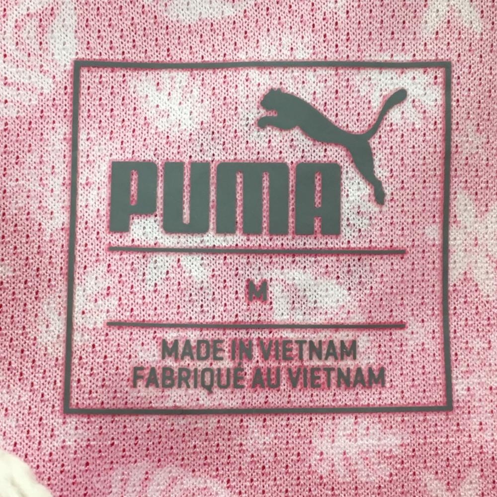 【超美品】プーマ 半袖ポロシャツ レッドピンク×白 総柄 貝 花 胸元ロゴ レディース M ゴルフウェア PUMA