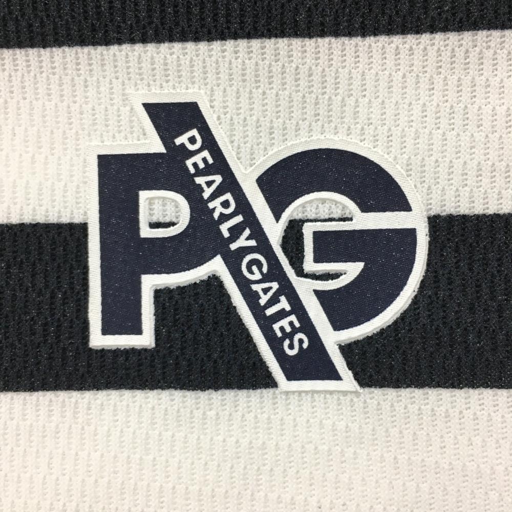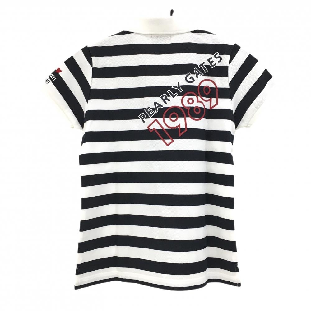 【超美品】パーリーゲイツ 半袖ポロシャツ 白×ダークネイビー ボーダー コットン混 レディース 0(S) ゴルフウェア PEARLY GATES