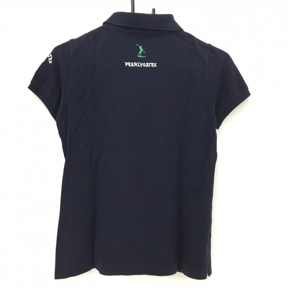 パーリーゲイツ 半袖ポロシャツ ネイビー×白 フェルトワッペン サーフィン レディース 0(S) ゴルフウェア PEARLY GATES