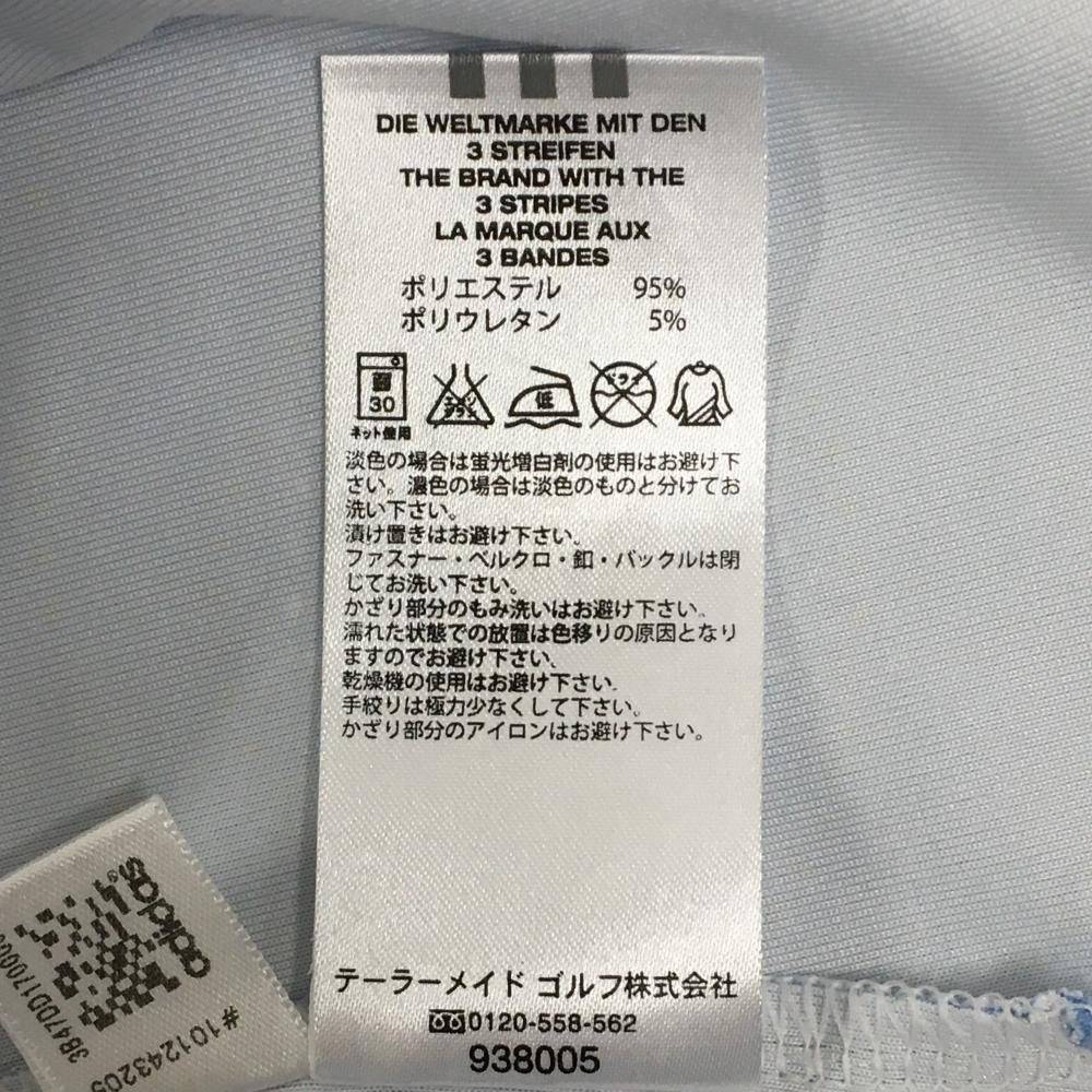 【美品】アディダス 半袖ポロシャツ ライトブルー 総柄 ウエスト調節紐付き レディース L/G ゴルフウェア adidas