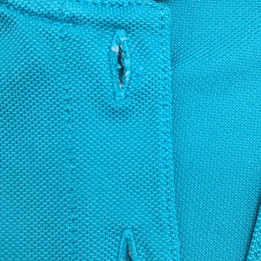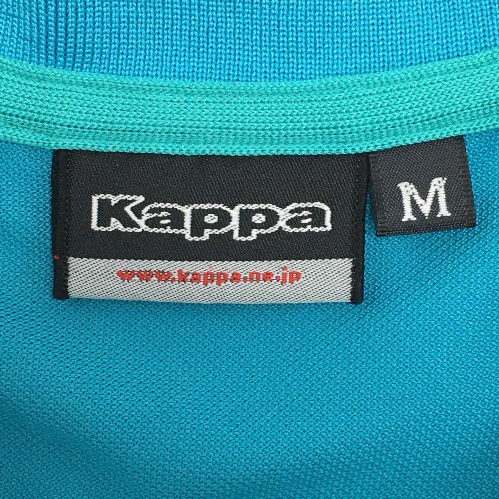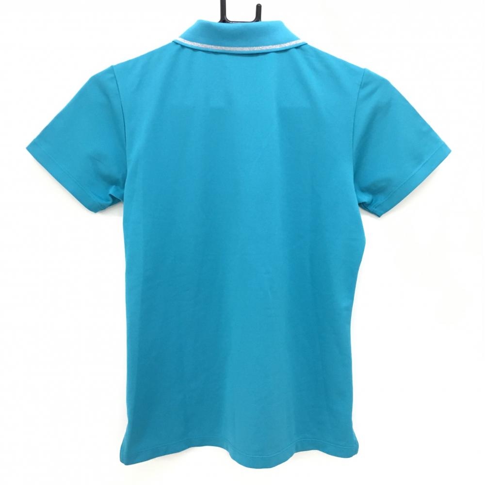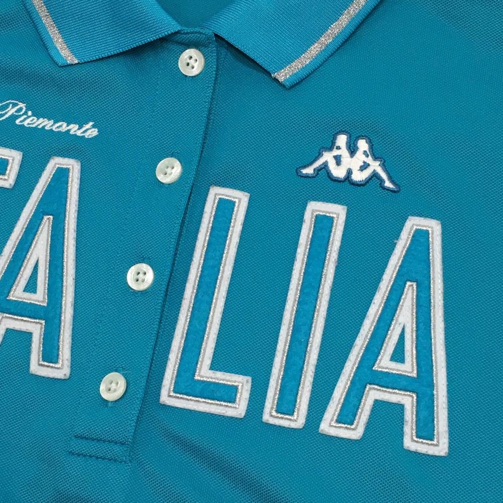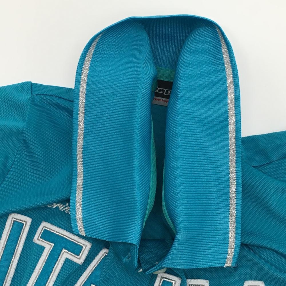 カッパ 半袖ポロシャツ ライトブルー×白 ロゴ刺しゅう ビッグワッペン 襟ライン レディース M ゴルフウェア Kappa