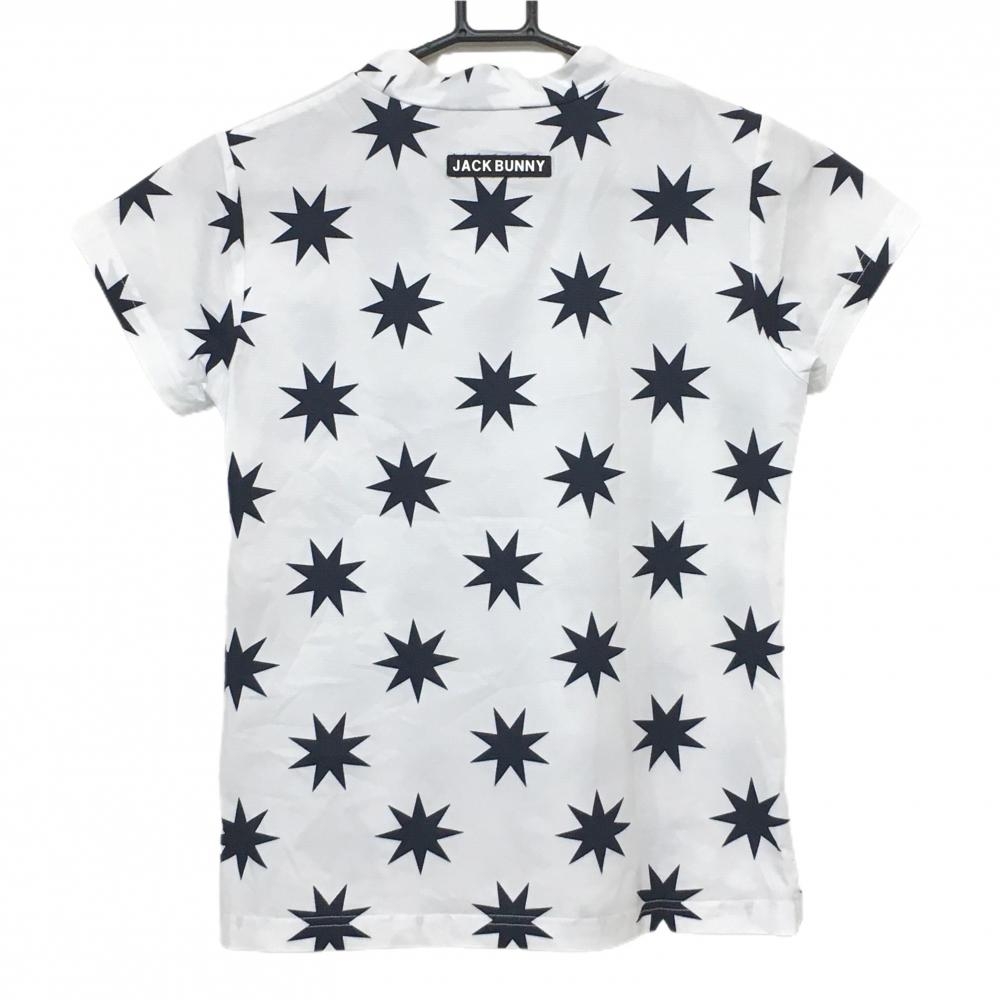 【超美品】ジャックバニー 半袖ハイネックシャツ 白×ネイビー 星柄 スター レディース 0(S) ゴルフウェア 2024年モデル Jack Bunny