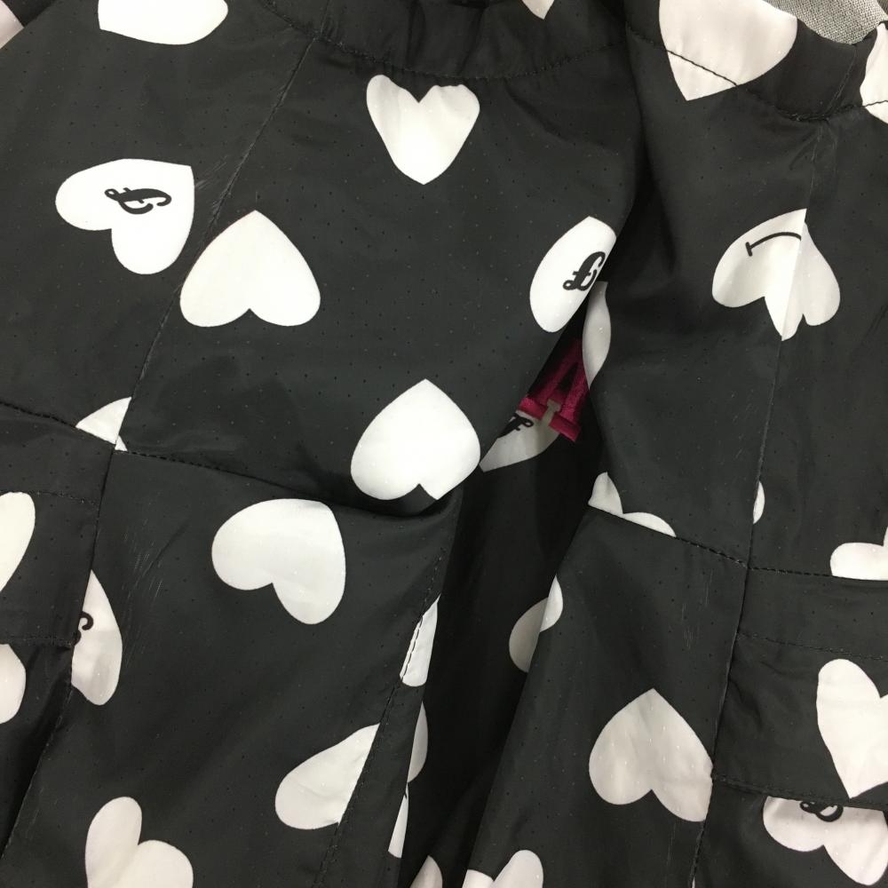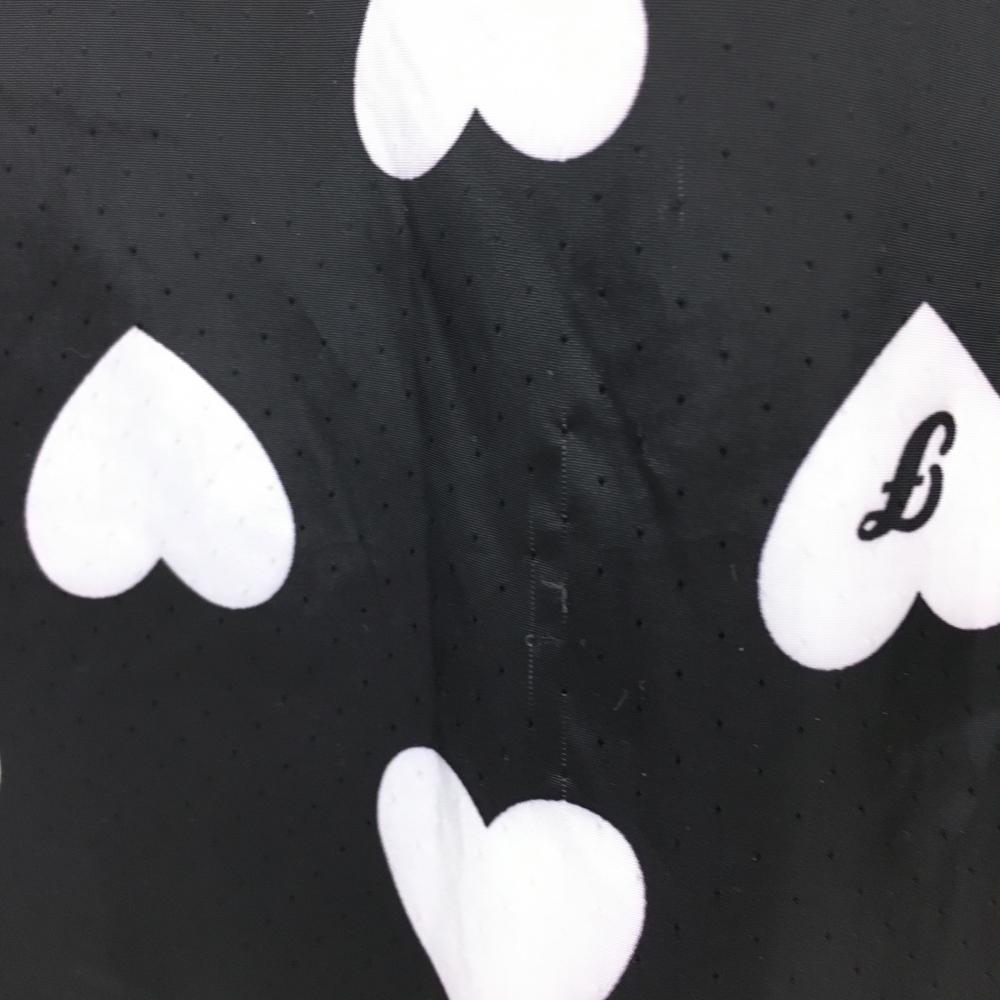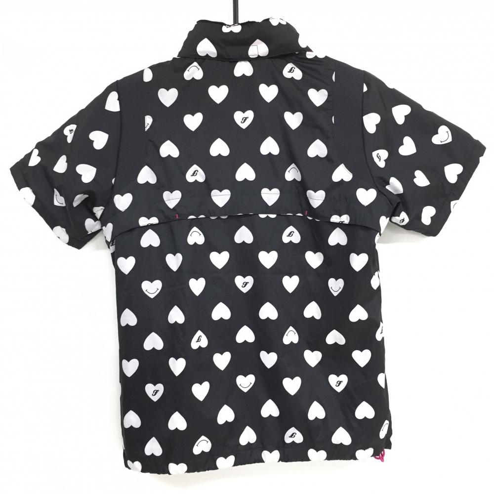【美品】フィラゴルフ 2WAY半袖ジャケット 黒×白 ハート総柄 ピンドット地模様 フード収納可 レディース M ゴルフウェア FILA GOLF