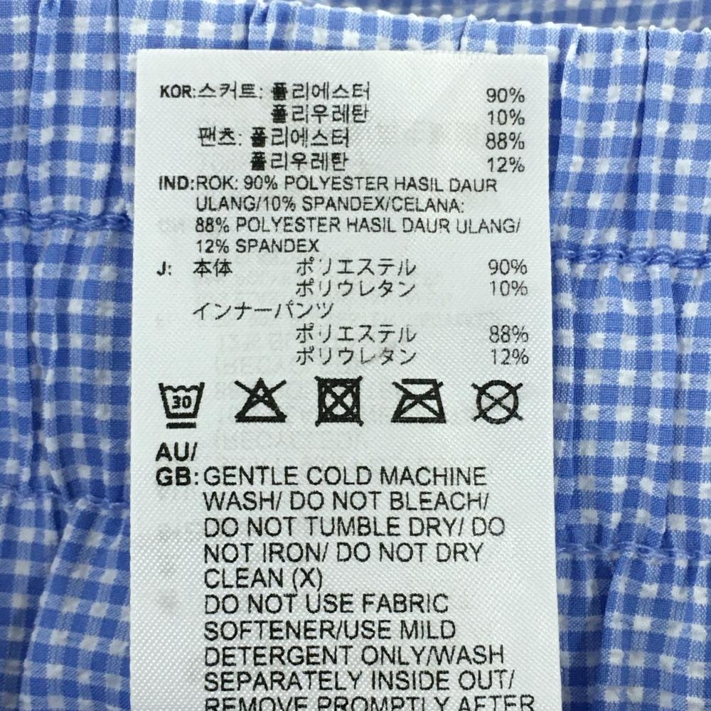 【超美品】アディダス スカート ライトブルー×白 チェック サッカー生地 内側インナーパンツ レディース M ゴルフウェア adidas