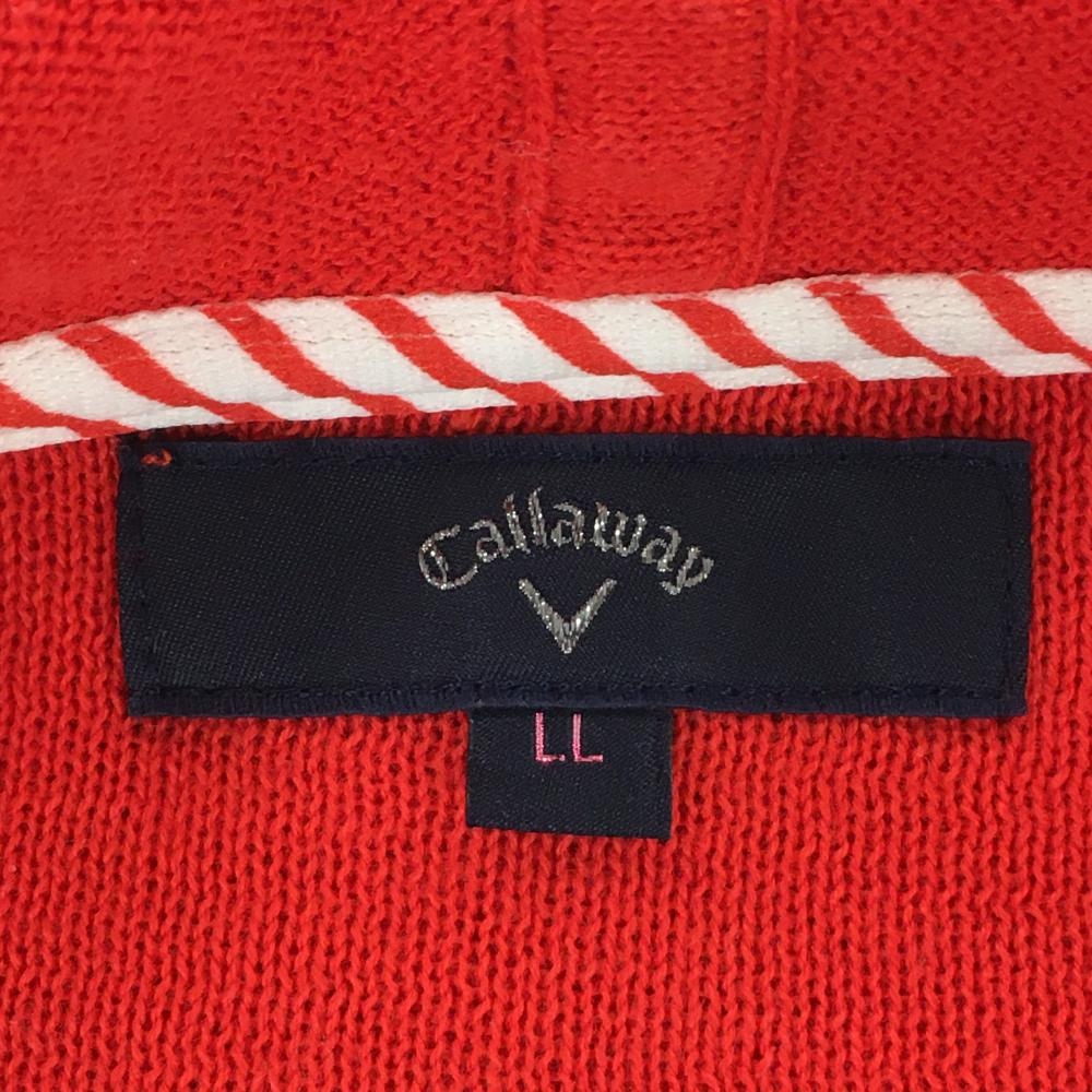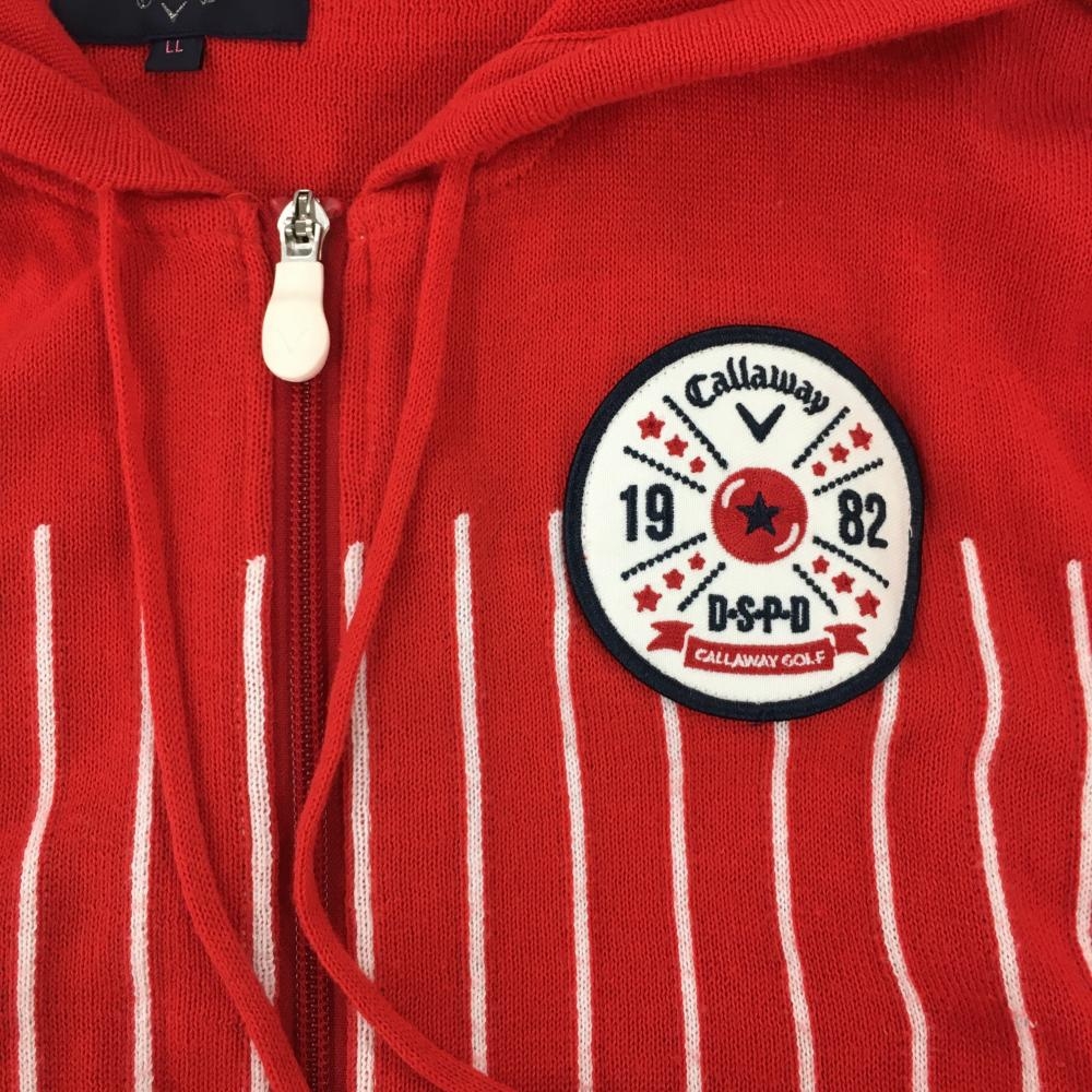 【美品】キャロウェイ ニットパーカー レッド×白 ストライプ ジャケット コットン混 レディース LL ゴルフウェア Callaway