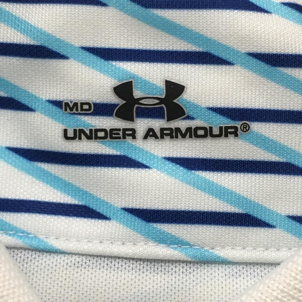 【超美品】アンダーアーマー 半袖ポロシャツ 白×ライトブルー×ネイビー レディース MD ゴルフウェア UNDER ARMOUR