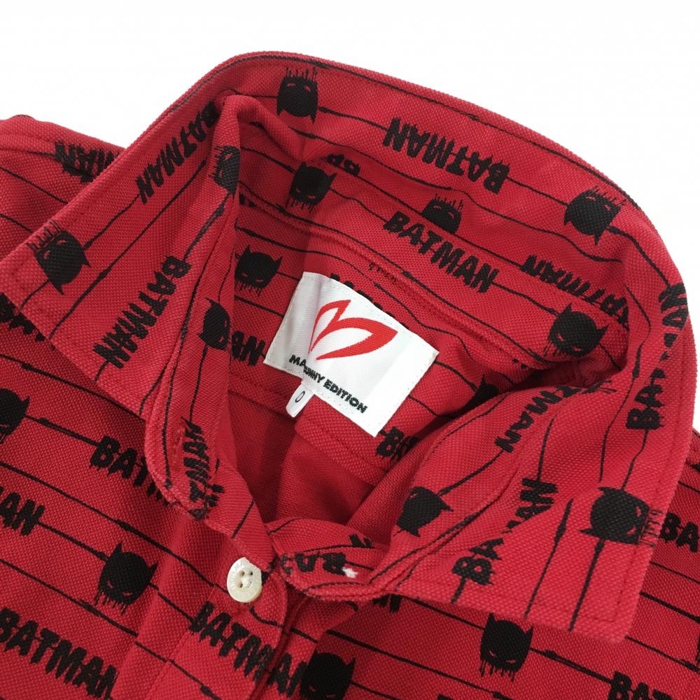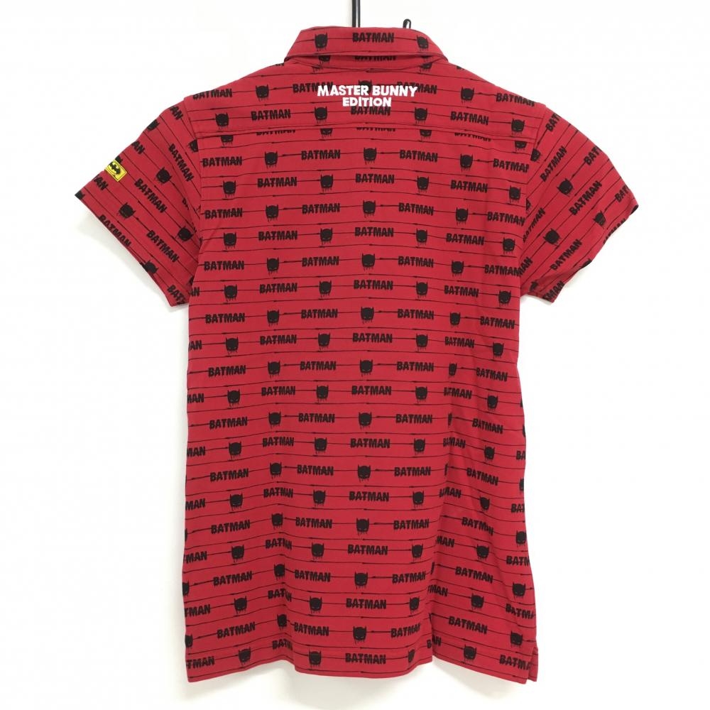 【美品】マスターバニー×バットマン 半袖ポロシャツ レッド×黒 総柄 BATMAN レディース 0(S) ゴルフウェア MASTER BUNNY EDITION