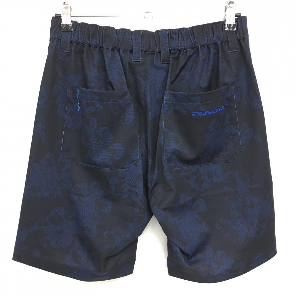 【新品】ロサーセン ハーフパンツ 黒×ネイビー 花柄 メッシュ生地 メンズ 76 ゴルフウェア Rosasen