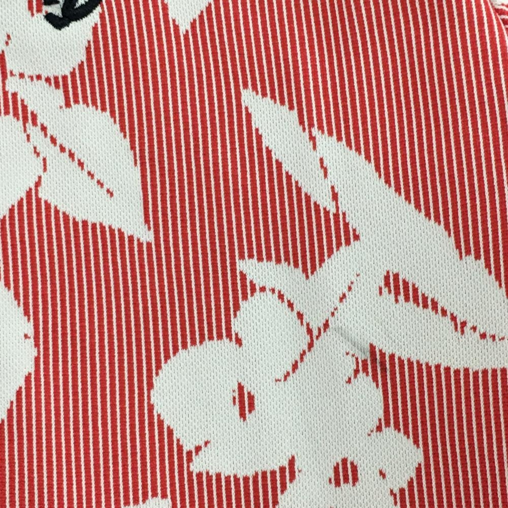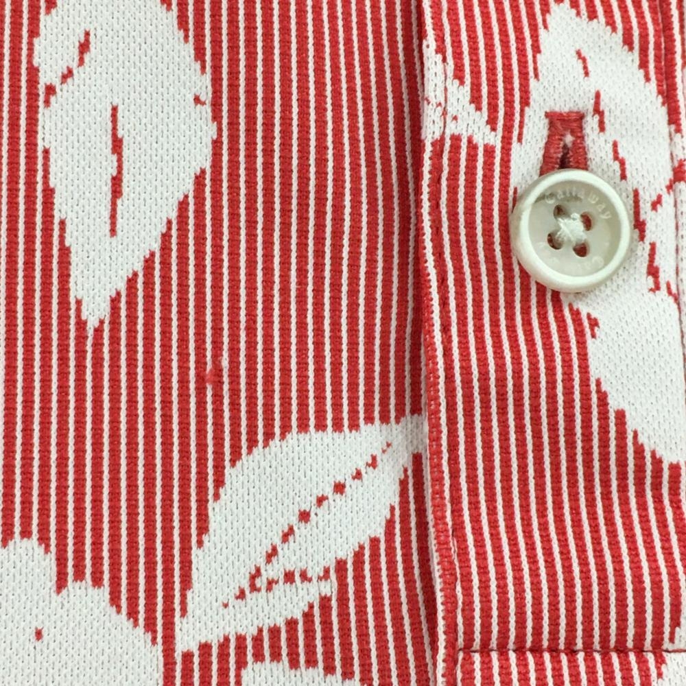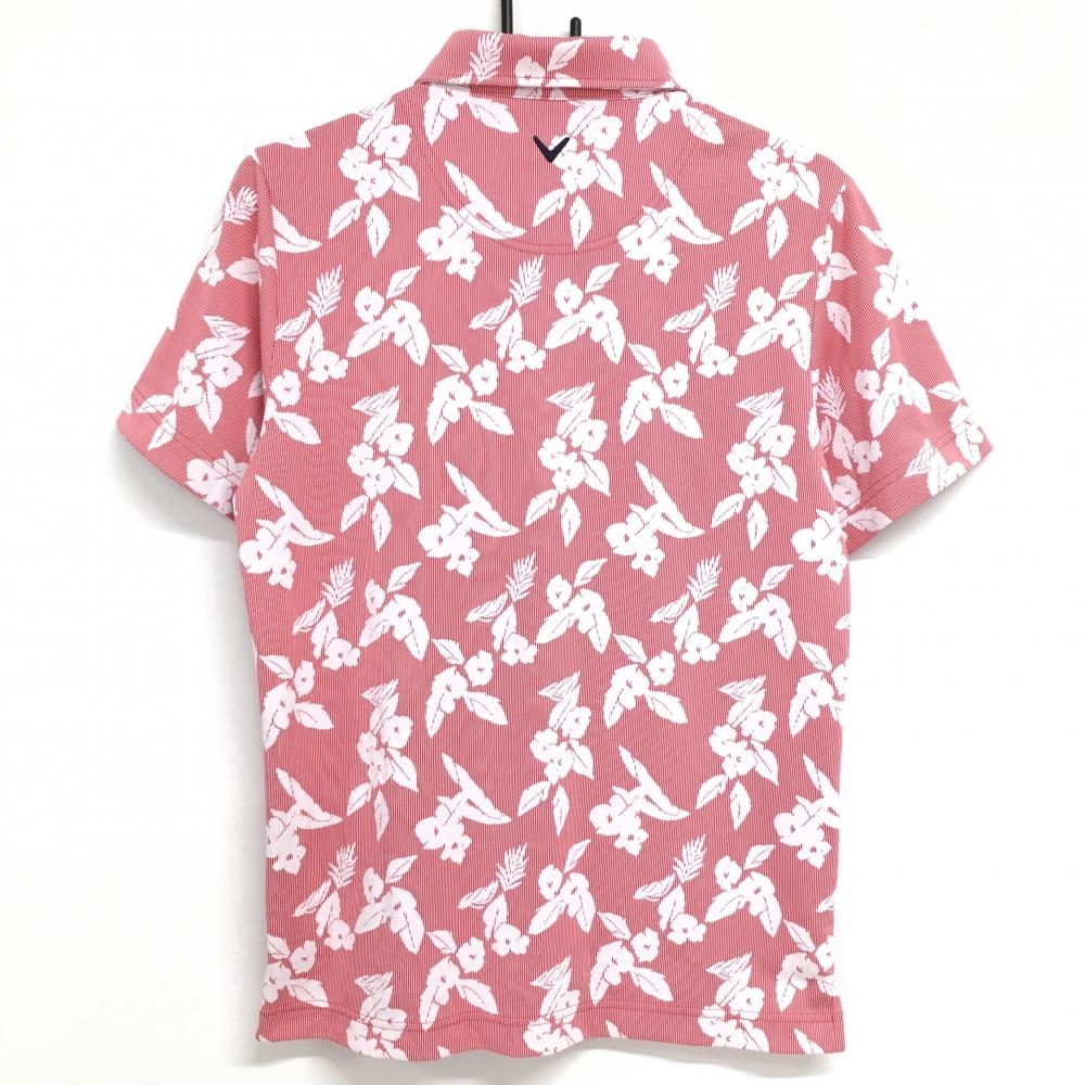 【超美品】キャロウェイ 半袖ポロシャツ レッド×白 細ストライプ 花柄 メンズ M ゴルフウェア Callaway