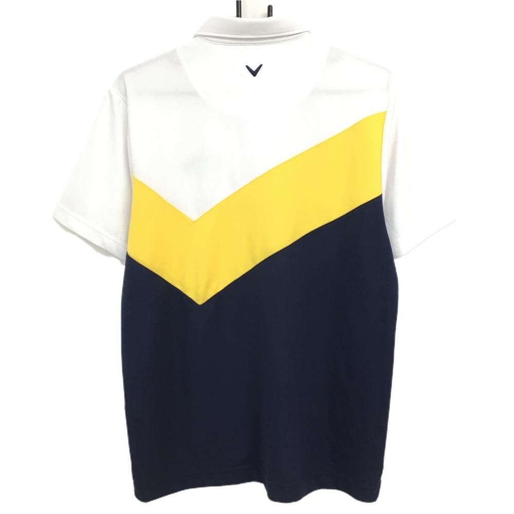 キャロウェイ 半袖ポロシャツ 白×イエロー×ネイビー ボタンダウン メンズ L ゴルフウェア Callaway