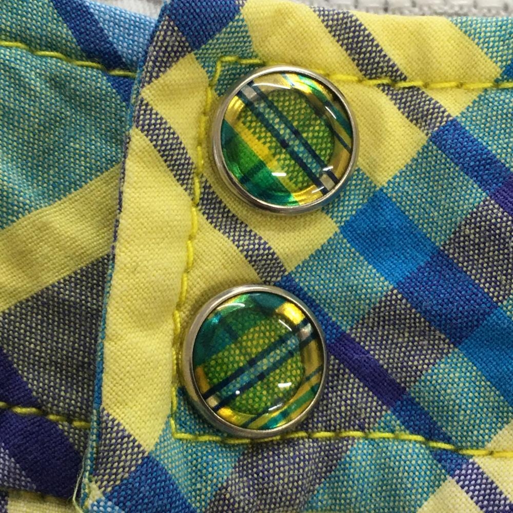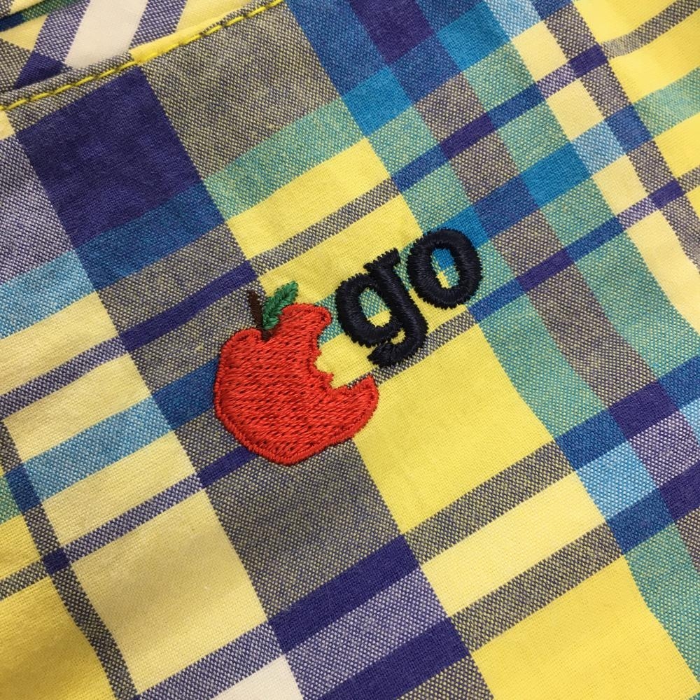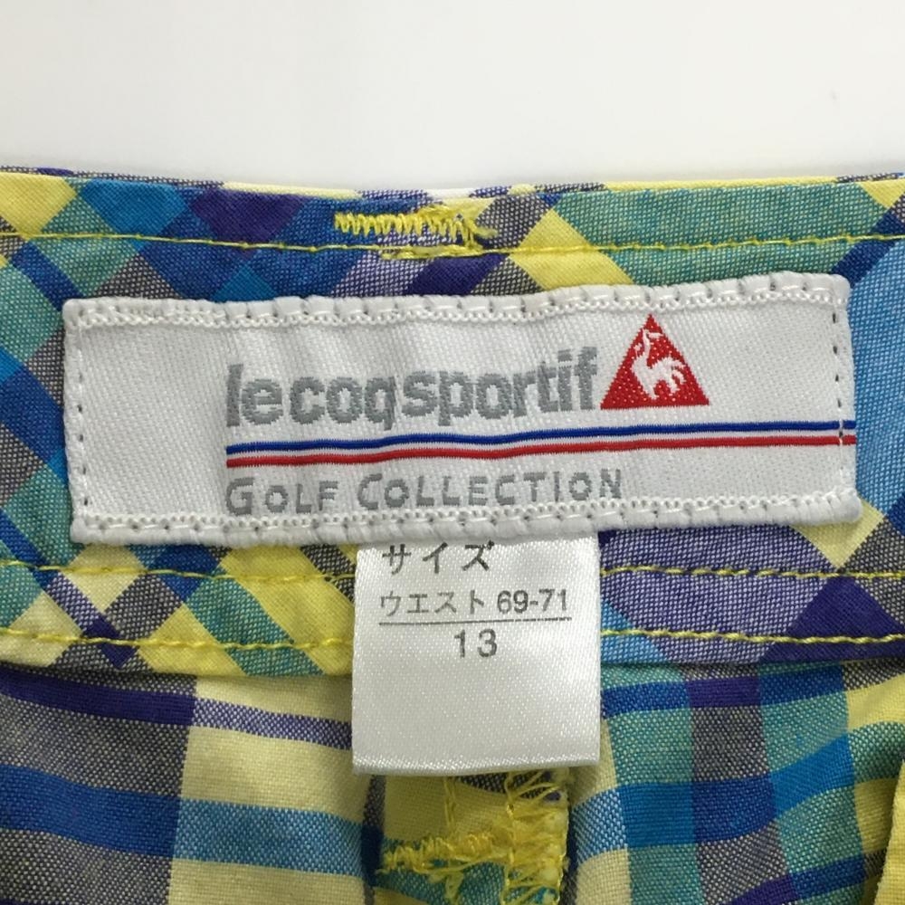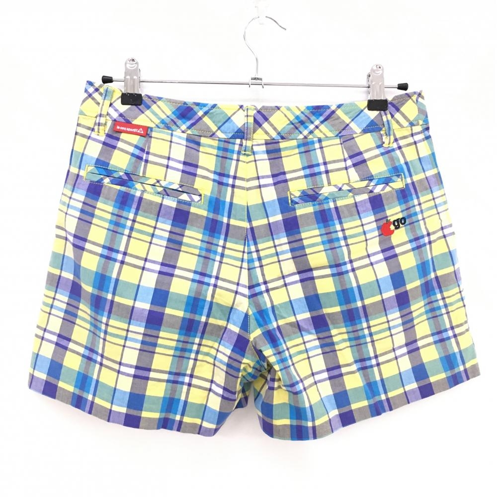 【美品】ルコック ショートパンツ ブルー×イエロー チェック ロゴ刺しゅう ストレッチ レディース 13 ゴルフウェア le coq sportif