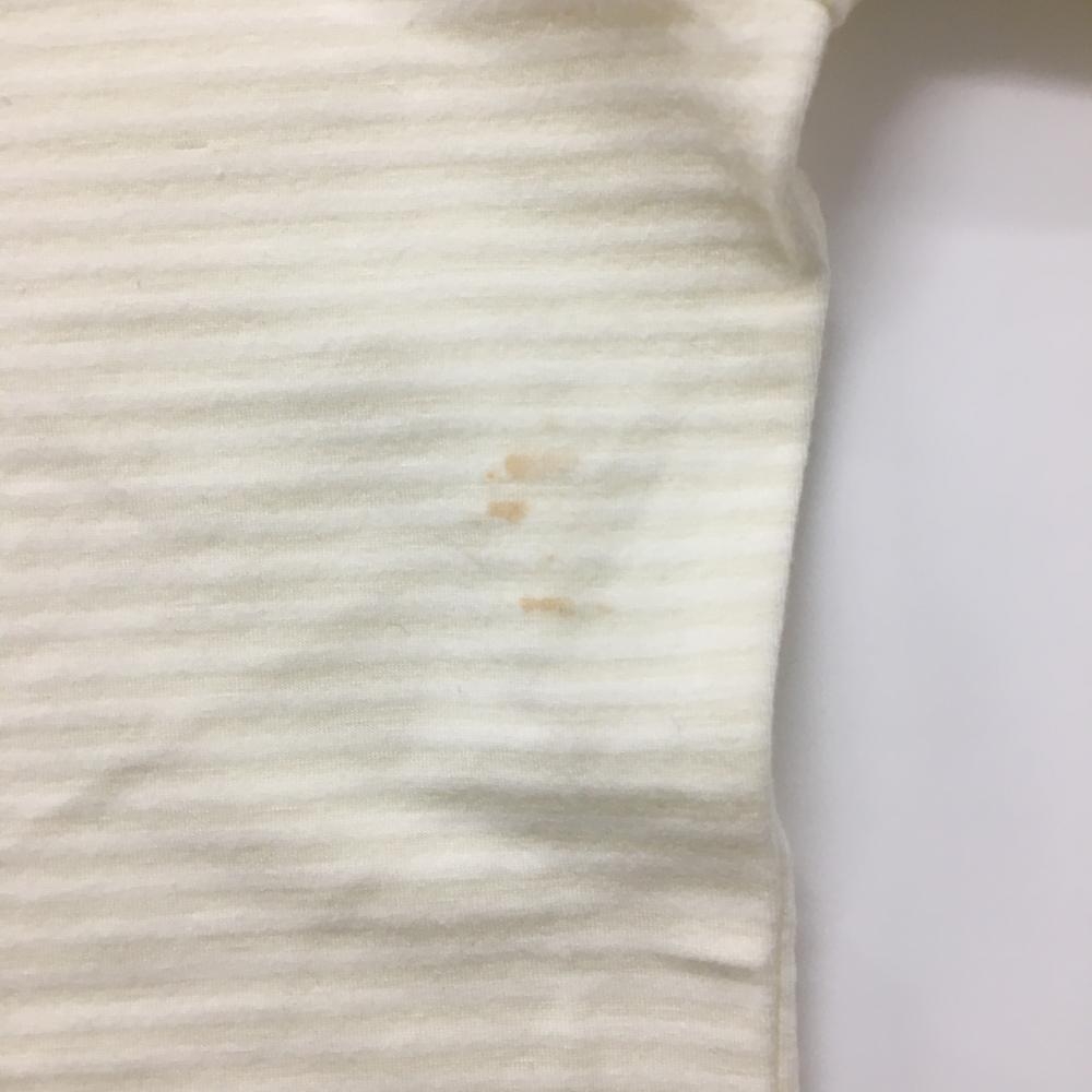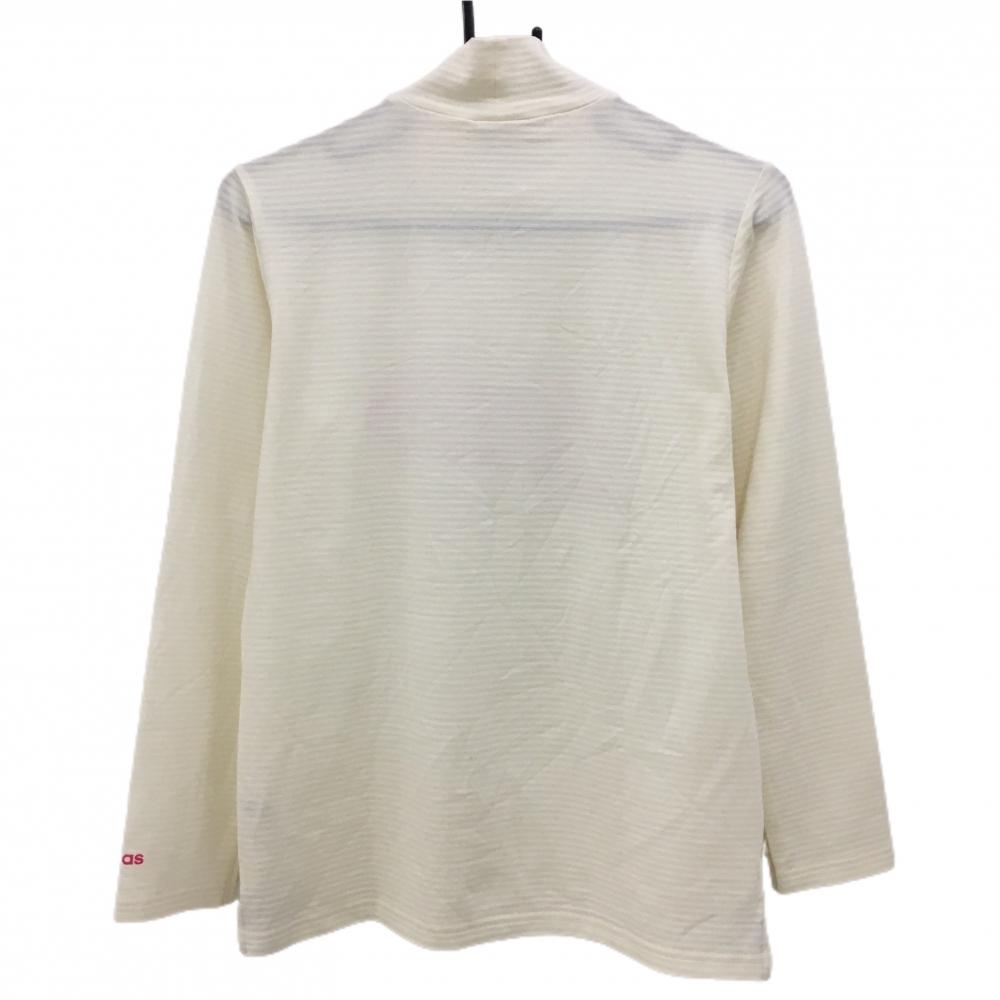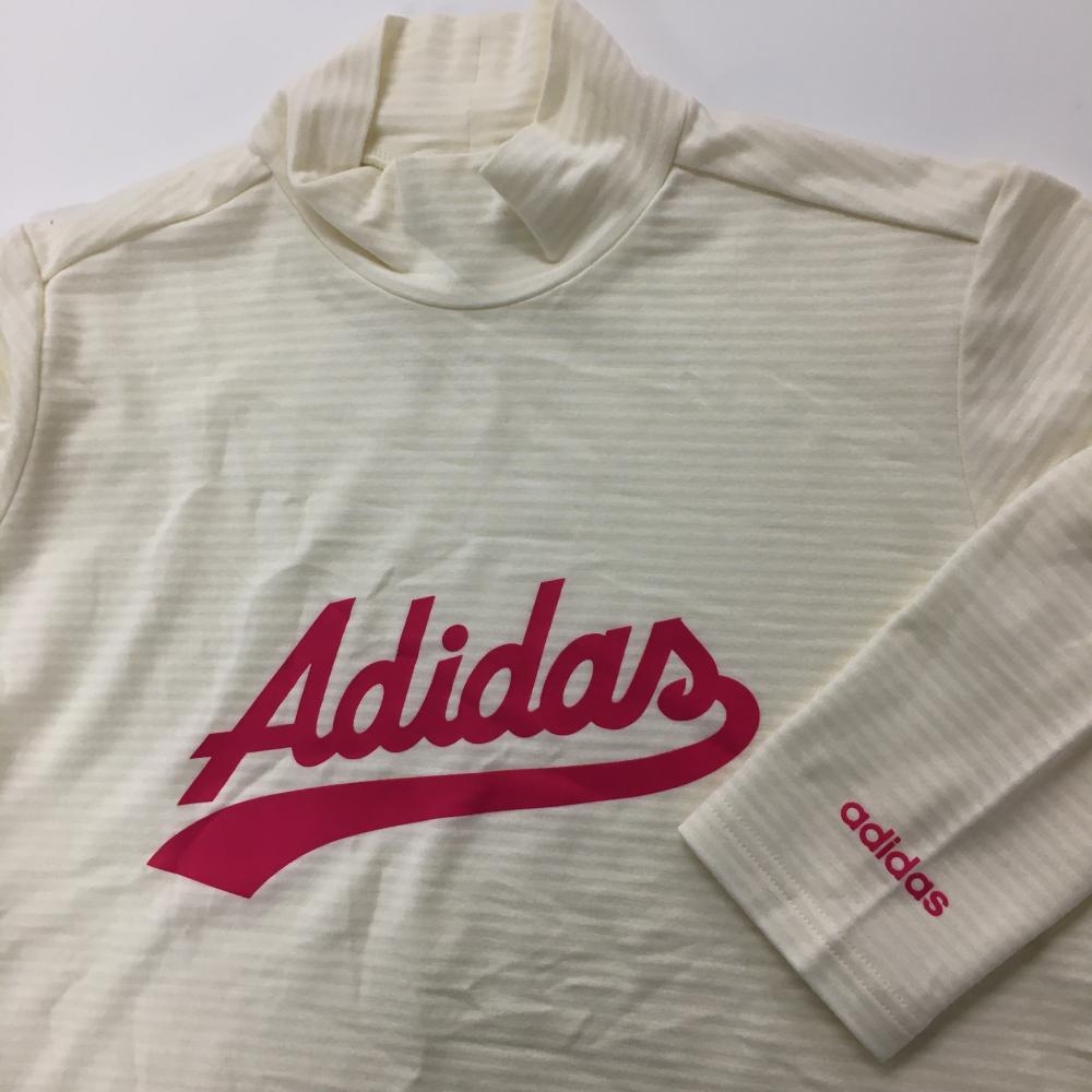 アディダス 長袖ハイネックシャツ アイボリー ボーダー織生地 ロゴピンク レディース L/G ゴルフウェア adidas