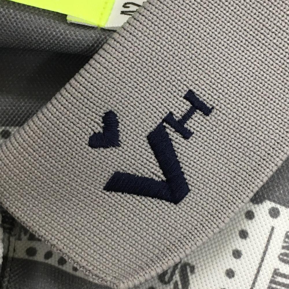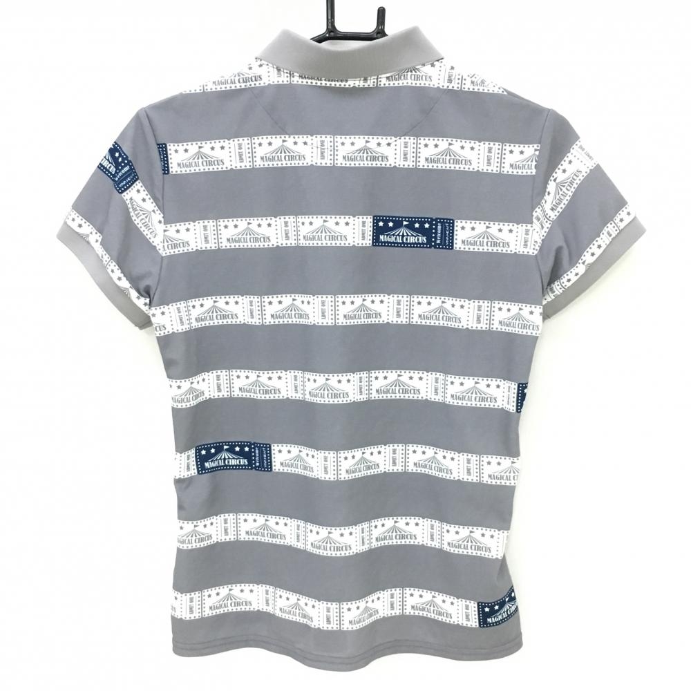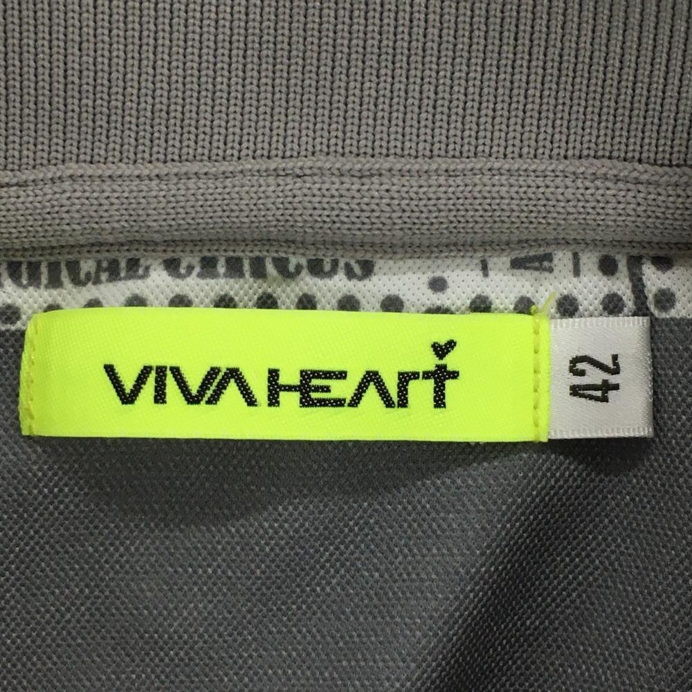 【超美品】ビバハート 半袖ポロシャツ グレー×白 ボーダー風 総柄 レディース 42(L) ゴルフウェア VIVA HEART