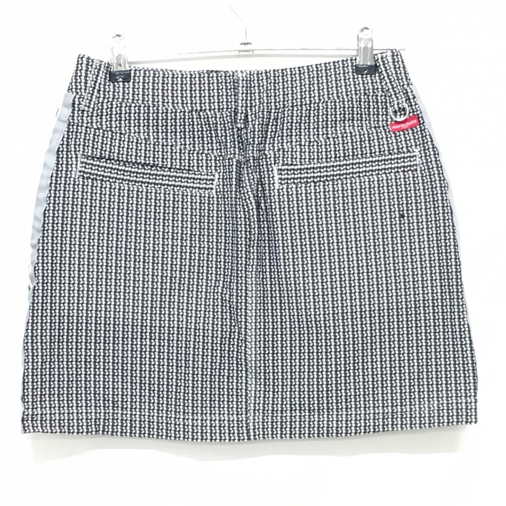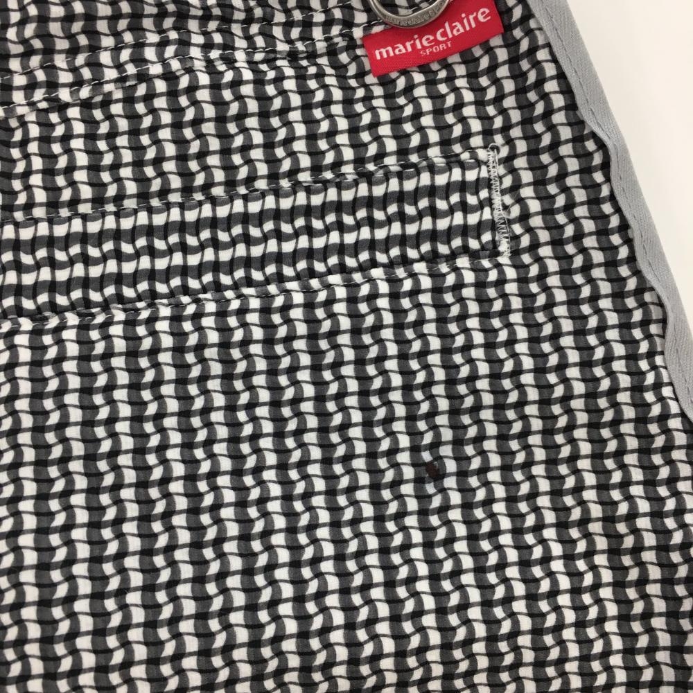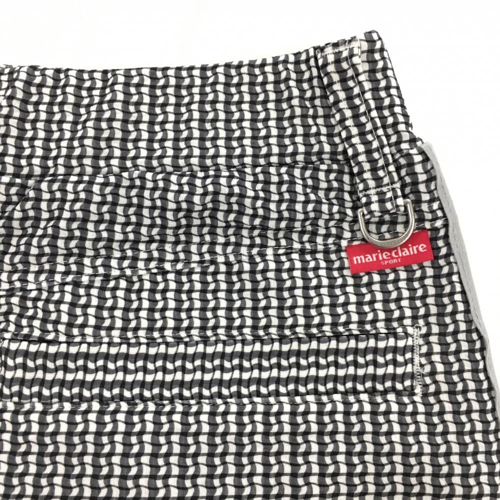 【美品】マリクレールスポール スカート 白×黒 総柄 サイドライン 裏地付き ウエストゴム 調節紐 レディース S ゴルフウェア marie claire