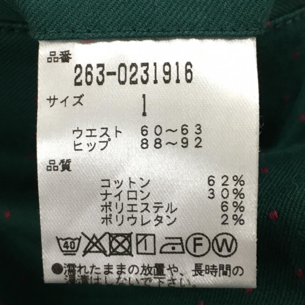 【超美品】ジャックバニー パンツ グリーン×ピンク ピンドット レディース 1(M) ゴルフウェア Jack Bunny