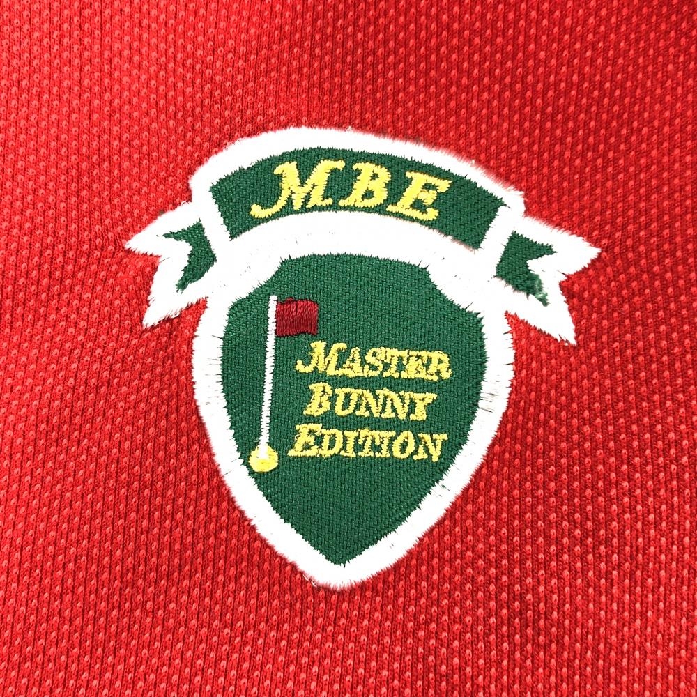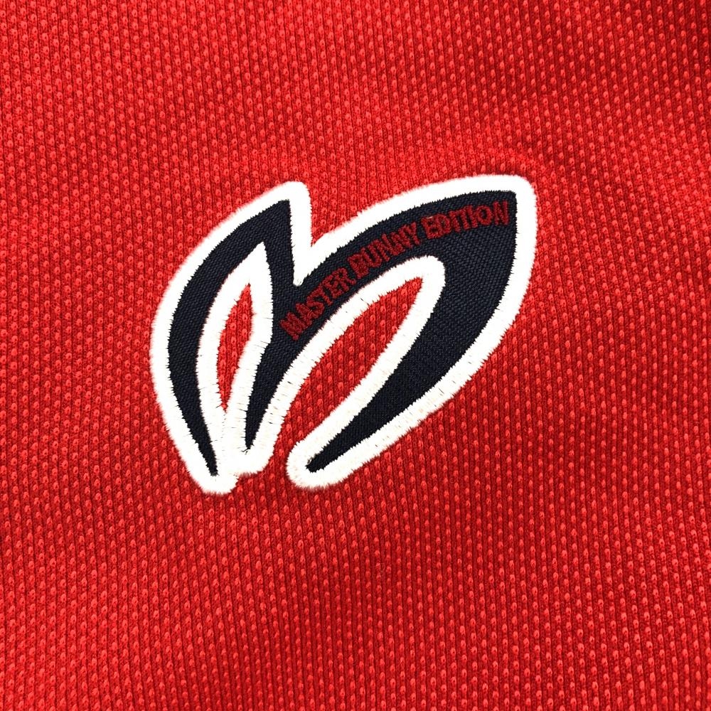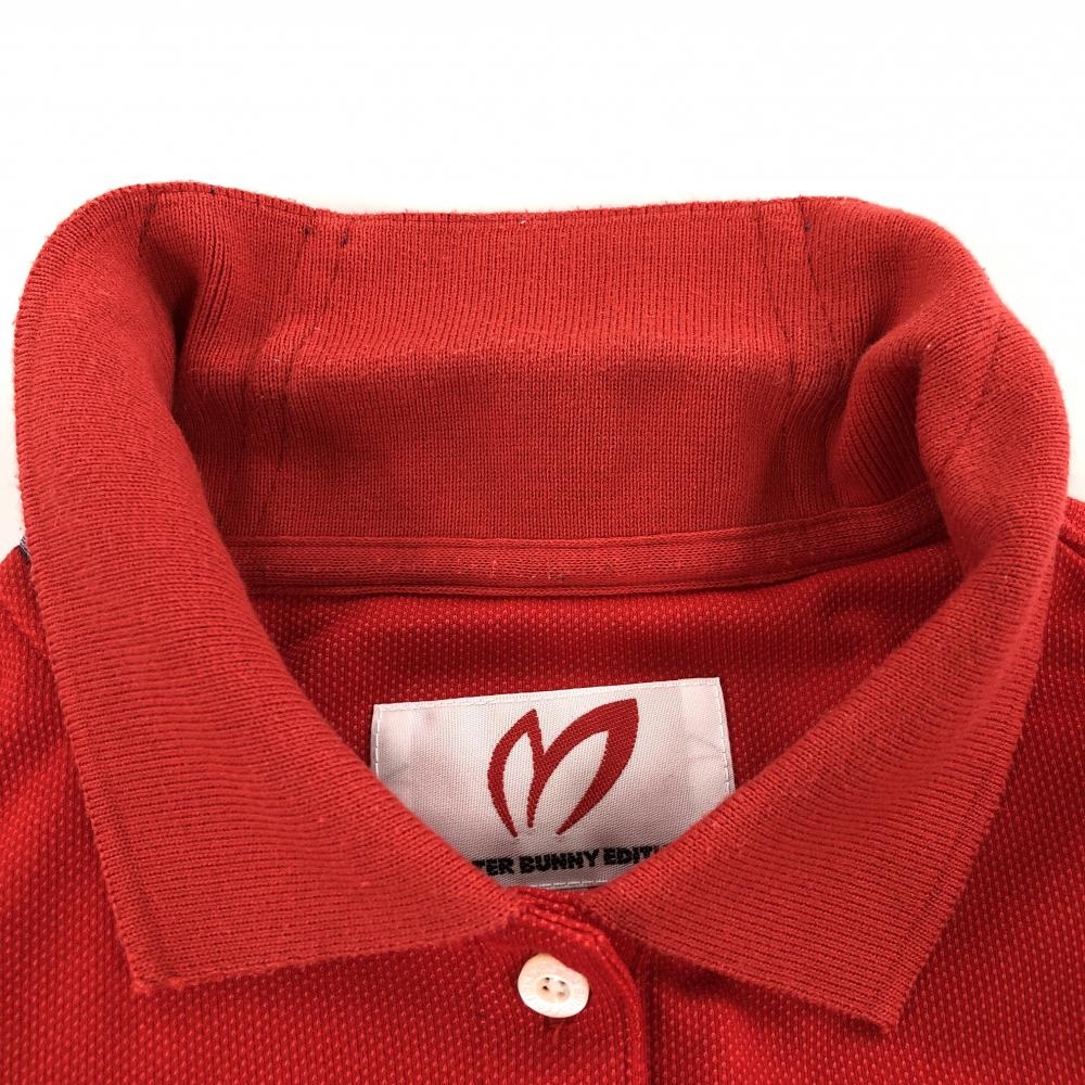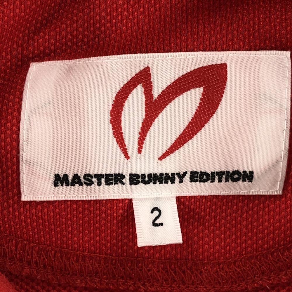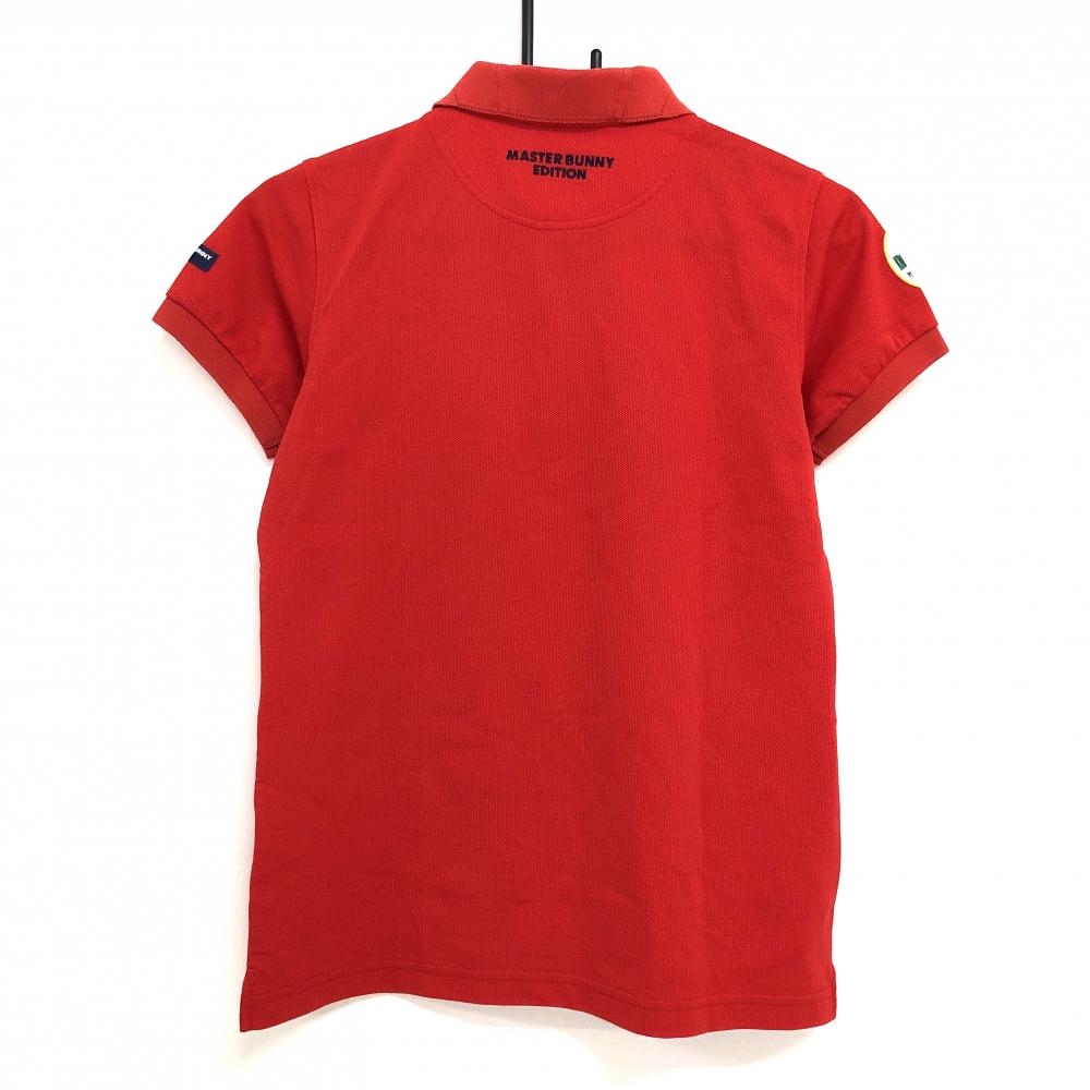 【美品】マスターバニー 半袖ポロシャツ レッド マイティバニー ロゴネイビー レディース 2(L) ゴルフウェア MASTER BUNNY EDITION