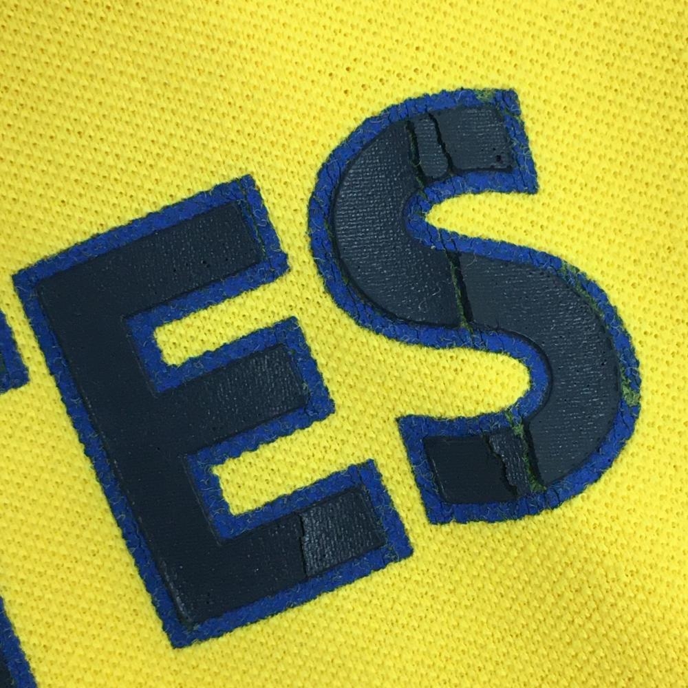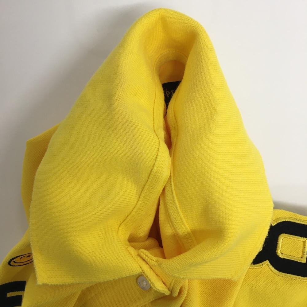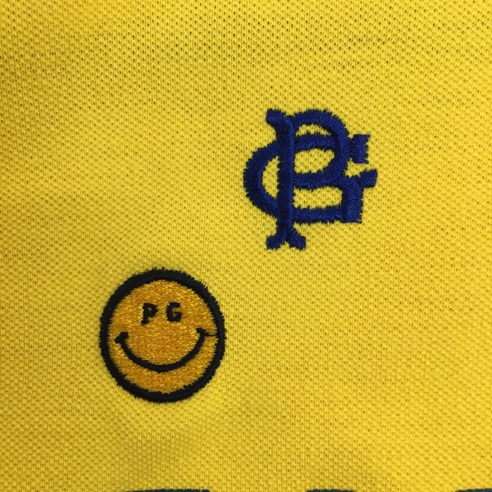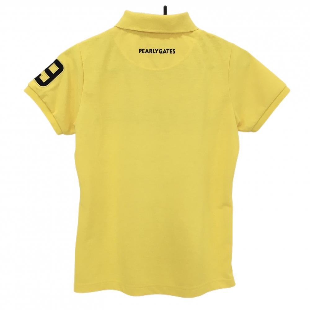 パーリーゲイツ 半袖ポロシャツ イエロー×ネイビー フロントロゴ ニコちゃん スマイル レディース 0(S) ゴルフウェア PEARLY GATES