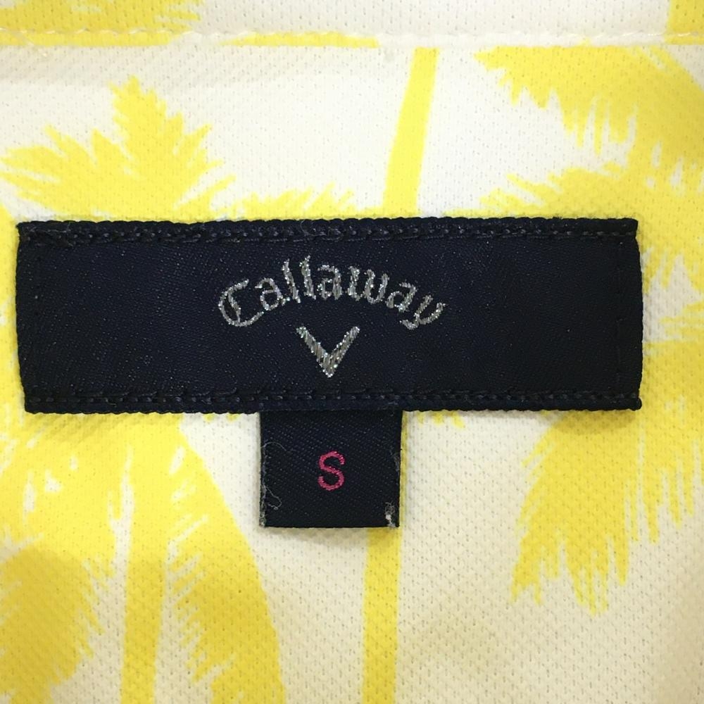 【超美品】キャロウェイ 半袖ポロシャツ 白×イエロー ヤシの木 総柄 レディース S ゴルフウェア Callaway