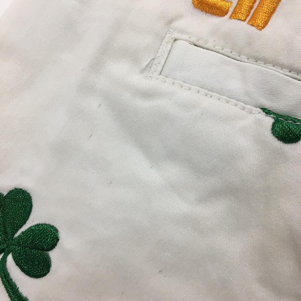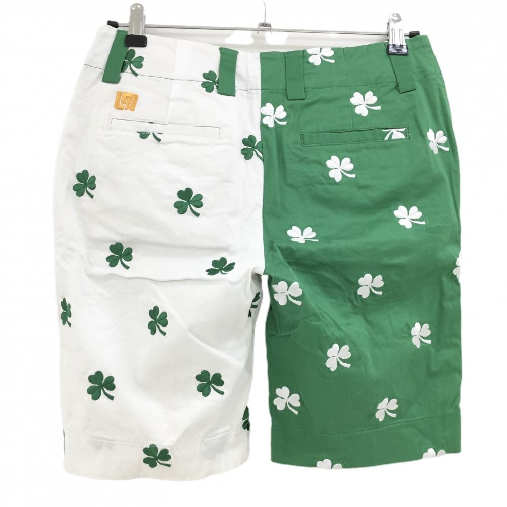 ラウドマウス ハーフパンツ グリーン×白 バイカラー クローバー総柄刺しゅう レディース US-4 ゴルフウェア LOUDMOUTH
