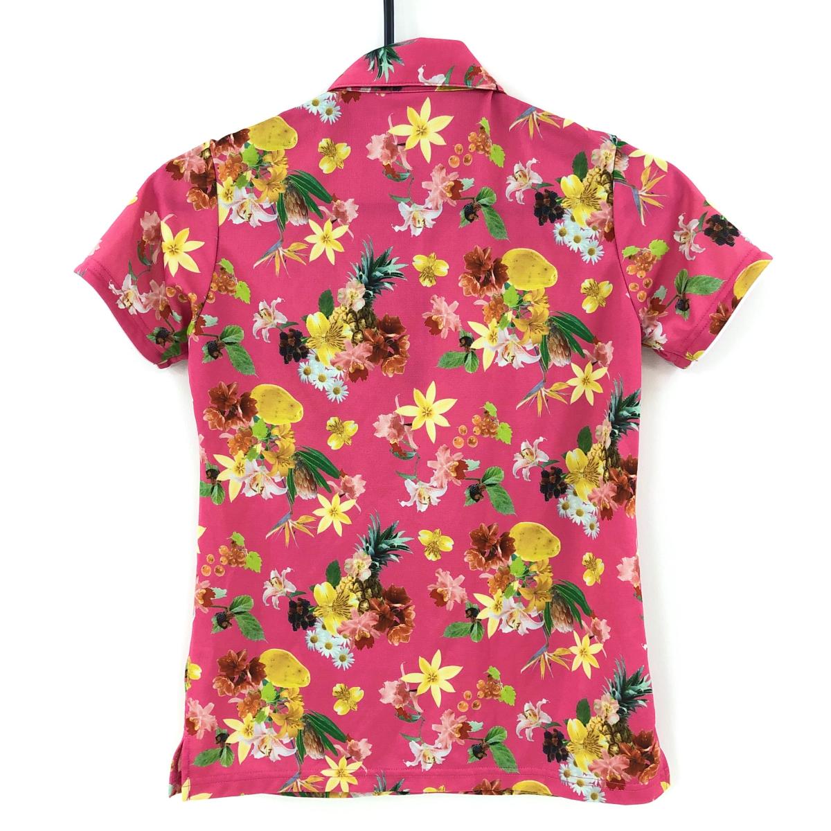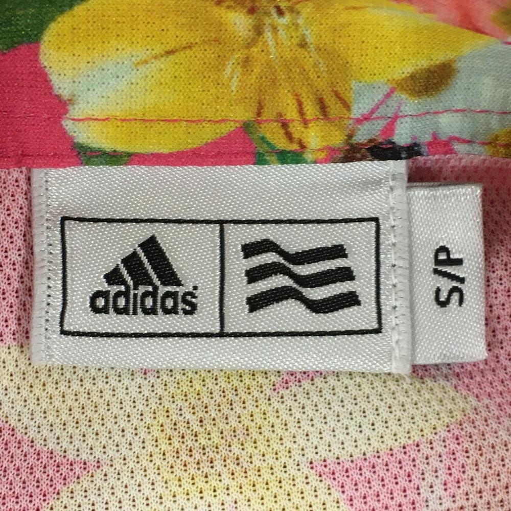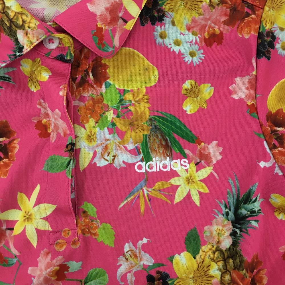 【超美品】アディダス 半袖ポロシャツ ピンク×マルチカラー 花柄 ロゴ刺しゅう レディース S/P ゴルフウェア adidas