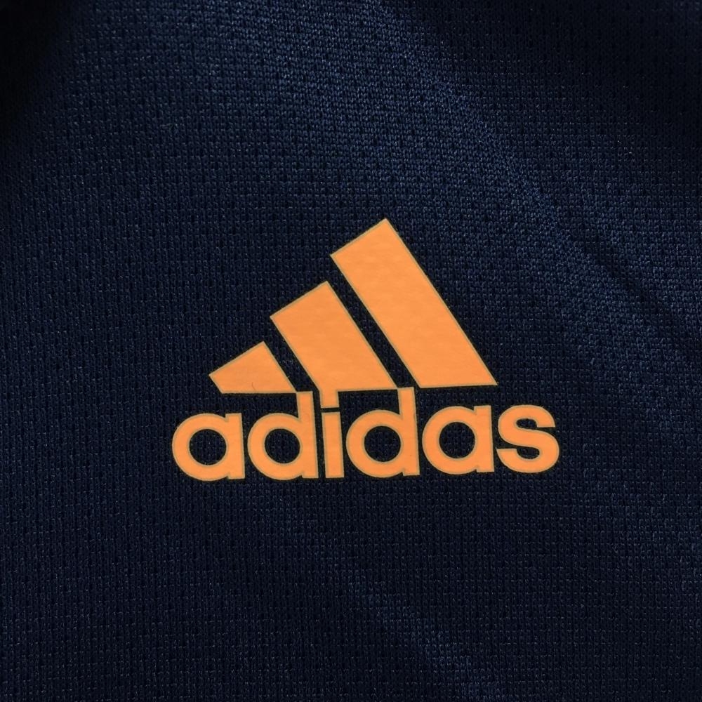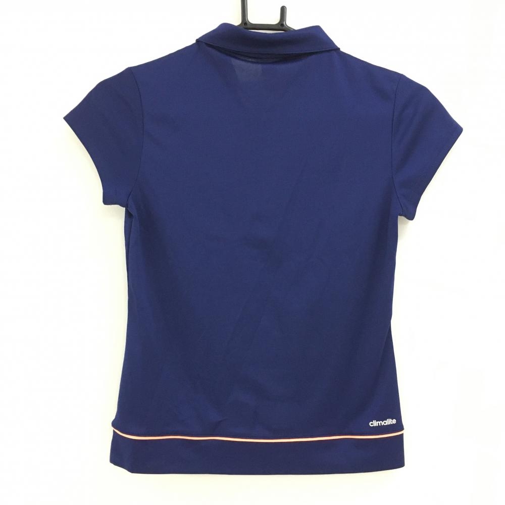 【美品】アディダス 半袖ポロシャツ ネイビー×オレンジ ロゴプリント レディース 表記なし ゴルフウェア adidas